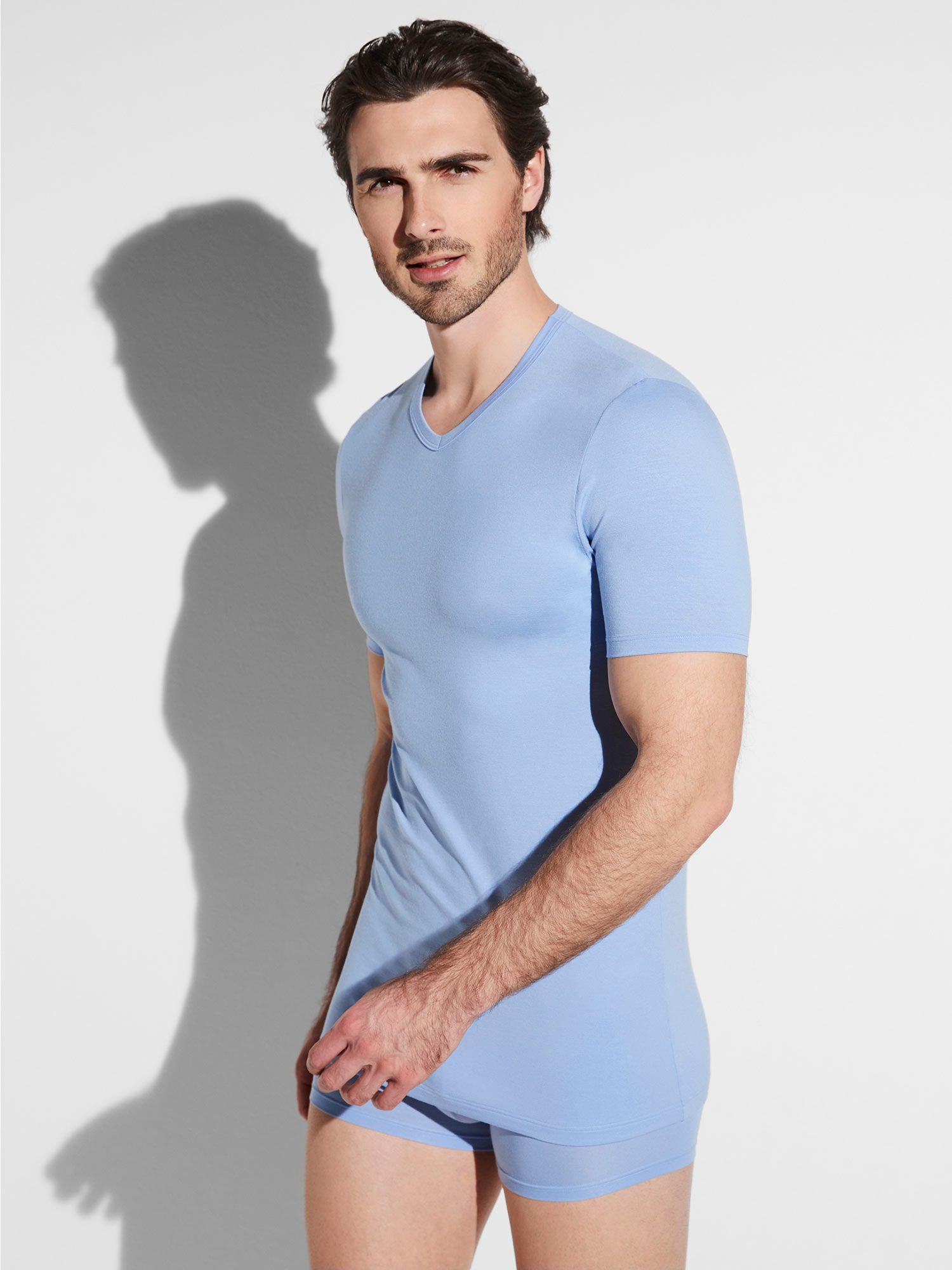 تي شيرت برقبة على شكل حرف V مصنوع من الميكرو مودال؛ من سلسلة 700 PURENESS من Zimmerli، باللون الصيفي المنعش bel air blue