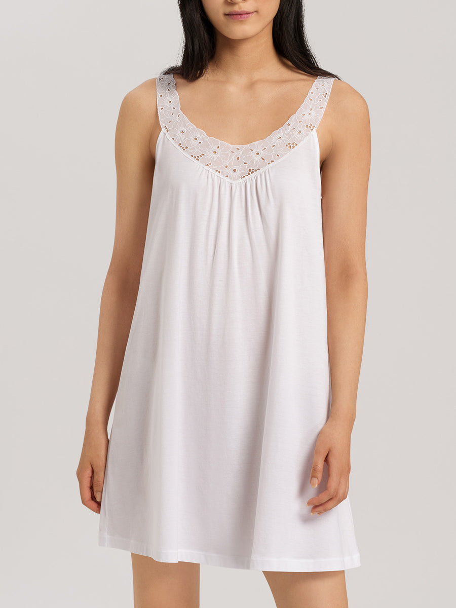 قميص نوم صيفي خفيف بدون أكمام مع تطريز زهري عتيق عند العنق والأشرطة.