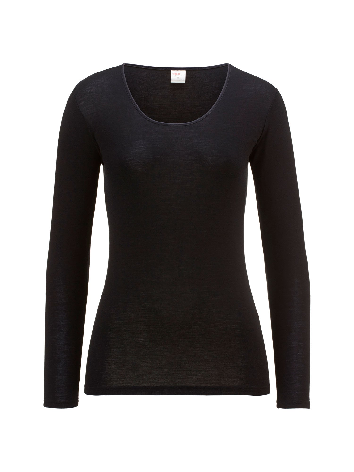 قميص بأكمام طويلة، ياقة دائرية، VIRGIN WOOL & SILK