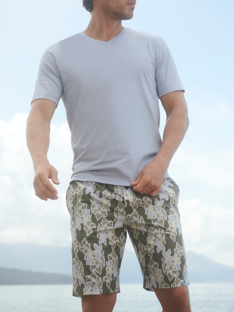 قميص مريح بلون بنفسجي مع فتحة عنق على شكل V (V-Neck)، غير شفاف ومثالي للاسترخاء والسفر. يمكن تنسيقه بشكل ممتاز مع جميع قطع هذه السلسلة.