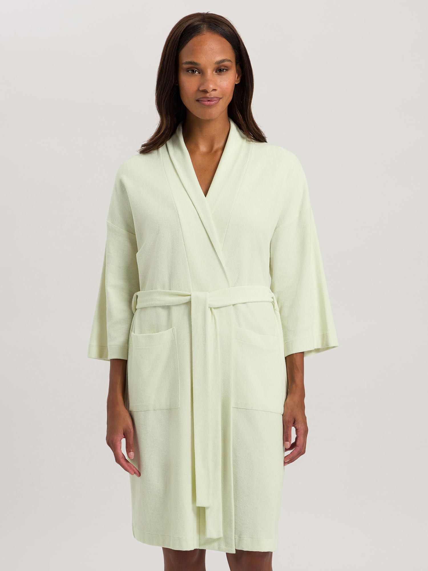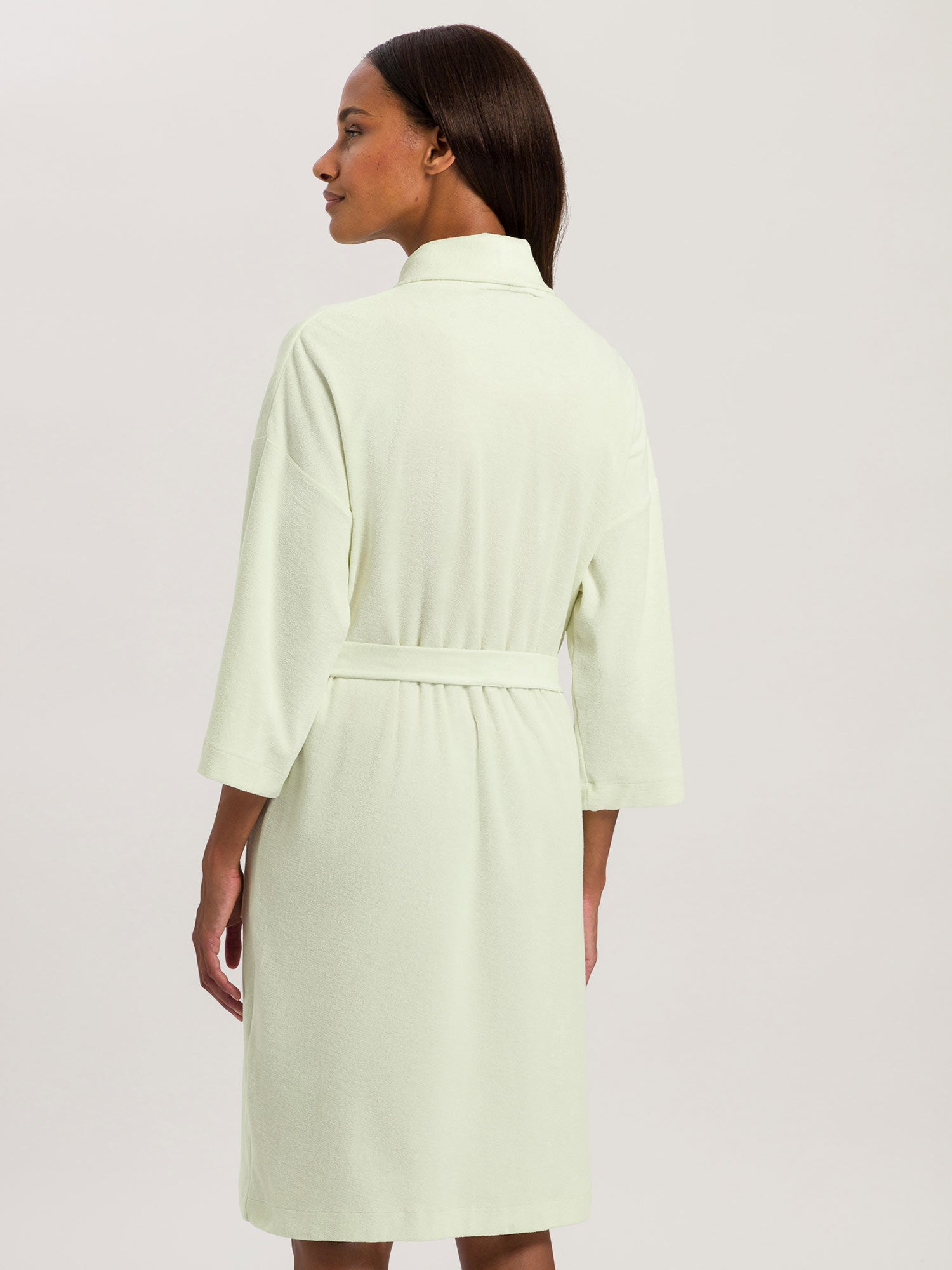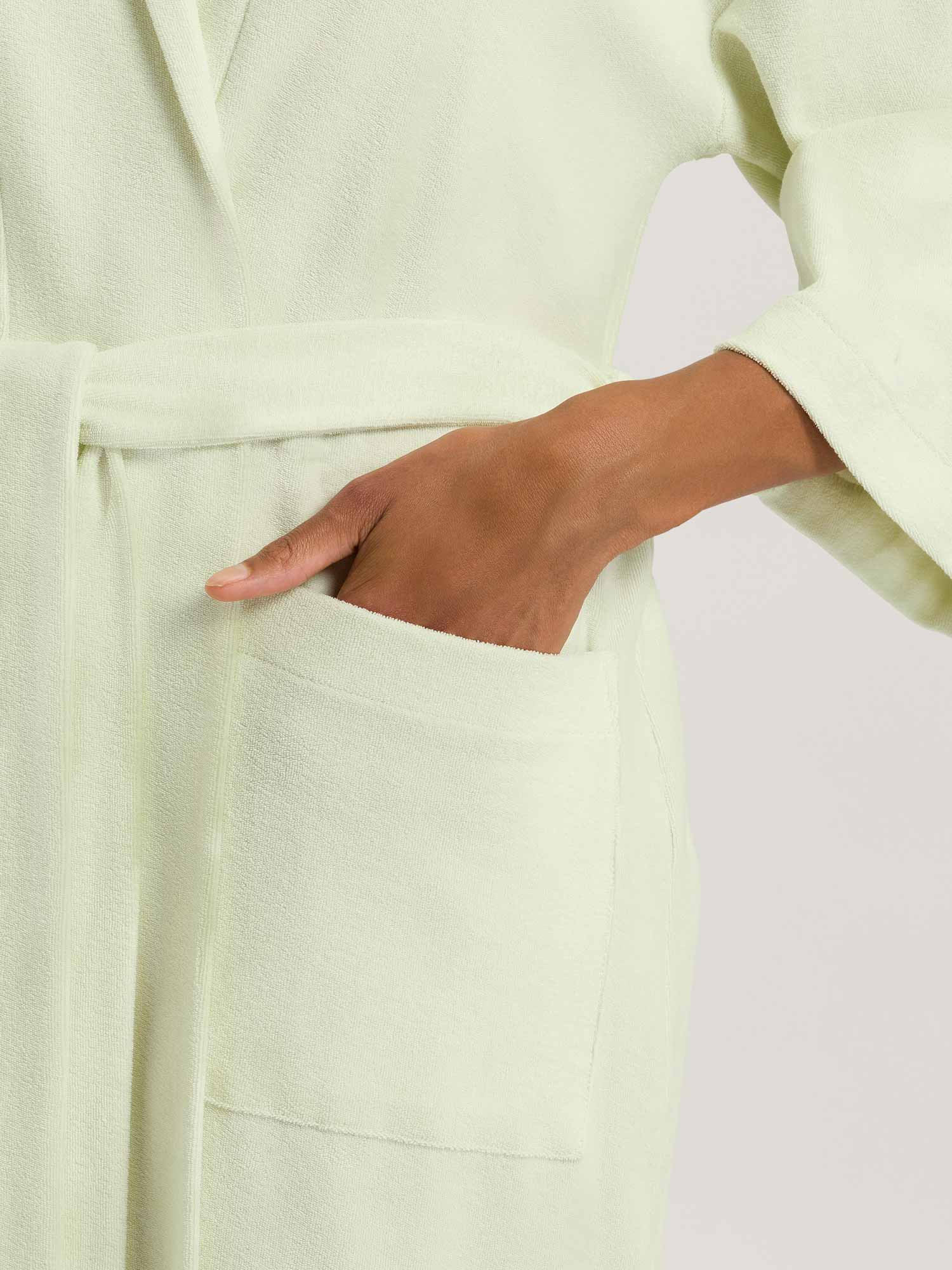 استمتع بيومك الصيفي القادم على الشاطئ أو بزيارة سبا مريحة! مع هذا الرفيق الجديد المفضل، سيصبح كل وقت مستقطع من الحياة اليومية متعة رائعة. بالطبع، يمكنك ارتداء هذا المعطف الناعم والمريح من الفروت في المنزل أيضًا للاسترخاء. لونه المنعش "الشاي الأخضر" يجلب الخفة والفرح في كل لحظة. مع جيوب جانبية عملية وحزام ربط متناسب.