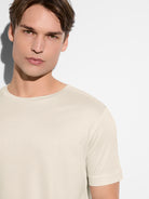 قميص بأكمام قصيرة مع خط رقبة مستدير، مصنوع من 100% ليوسيل؛ من سلسلة SUSTAINABLE LUXURY من Zimmerli، بلون صيفي "بيرش" (بيج)