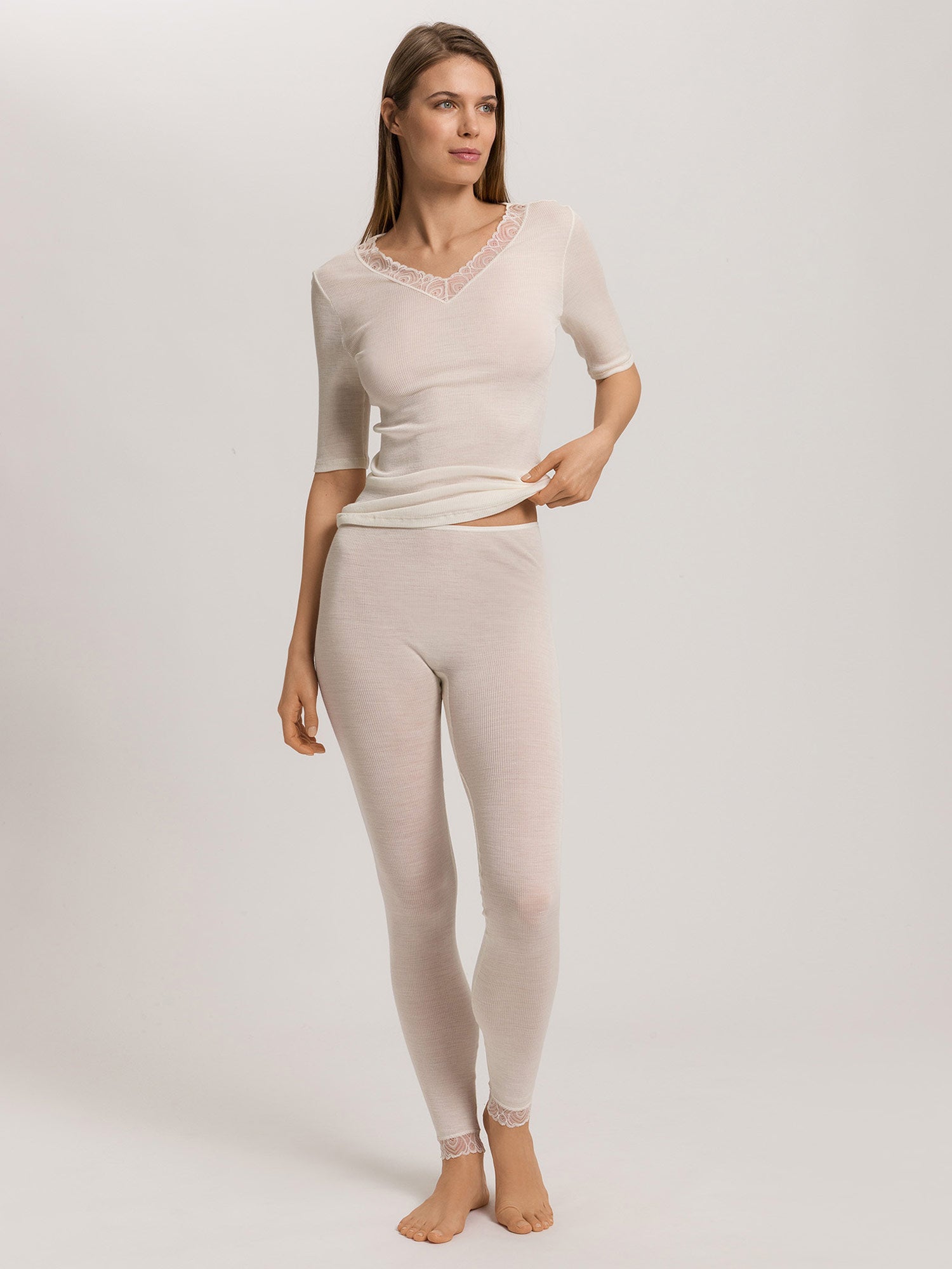 تدفئة طماق من صوف الميرينو والحرير مع الدانتيل على نهايات الساقين، من سلسلة HANRO-WOOLEN LACE
