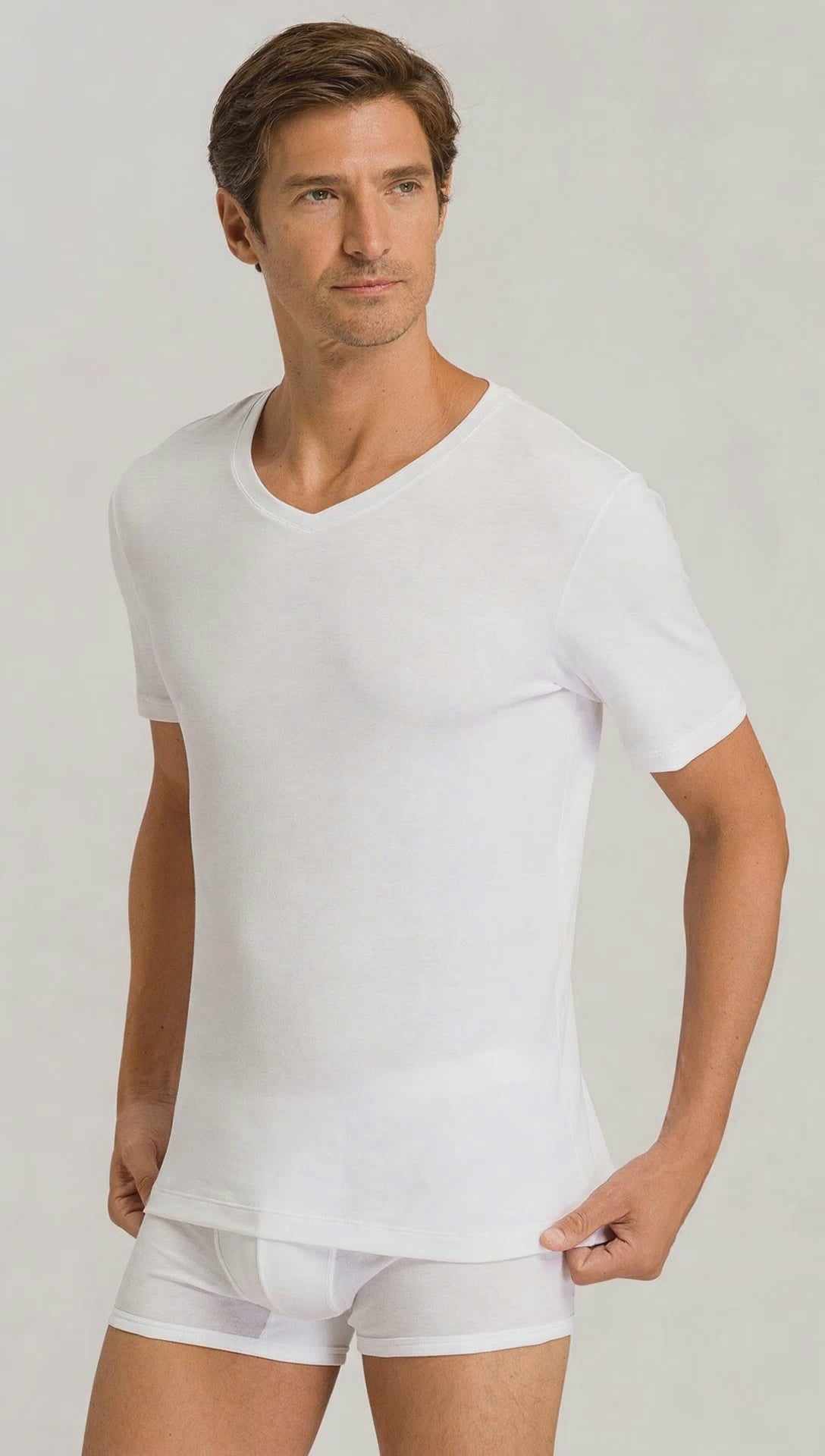 تي شيرت بياقة على شكل V، نصف كم، مصنوع من أفخم أنواع القطن
