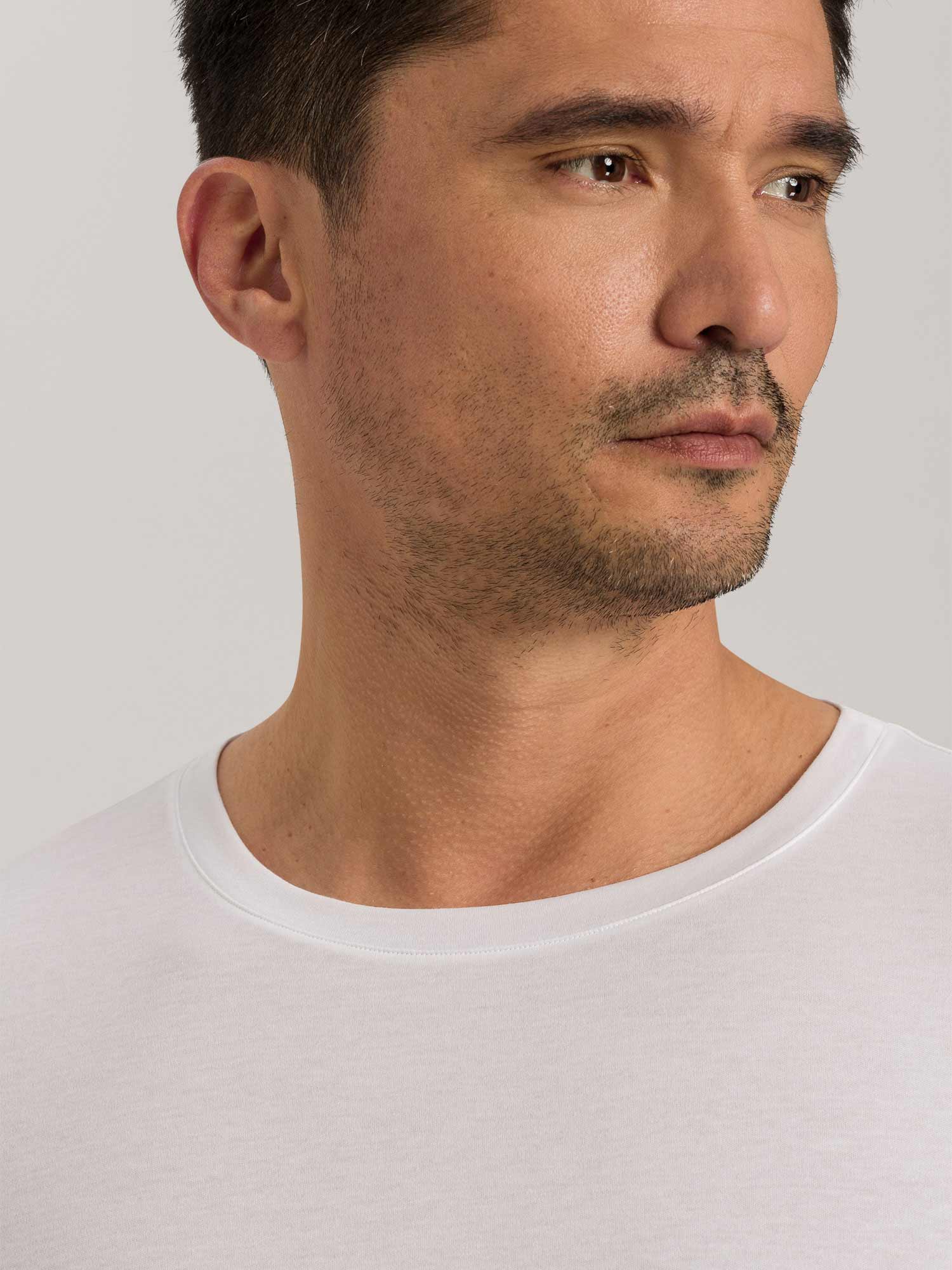 تي شيرت مع خط رقبة مستدير، نصف كم، مصنوع من القطن المقطوف يدويًا من سلسلة HANRO SEA ISLAND COTTON