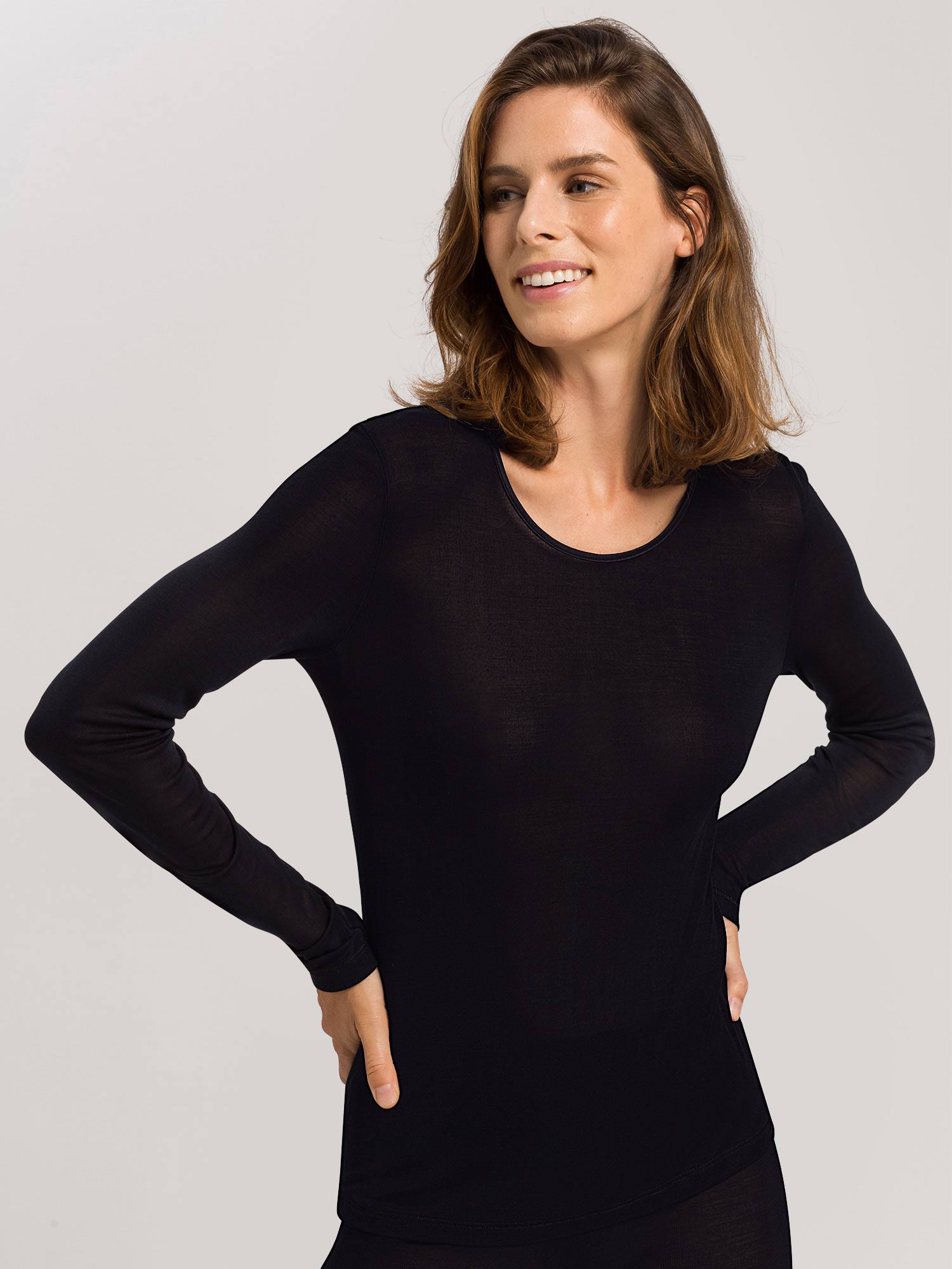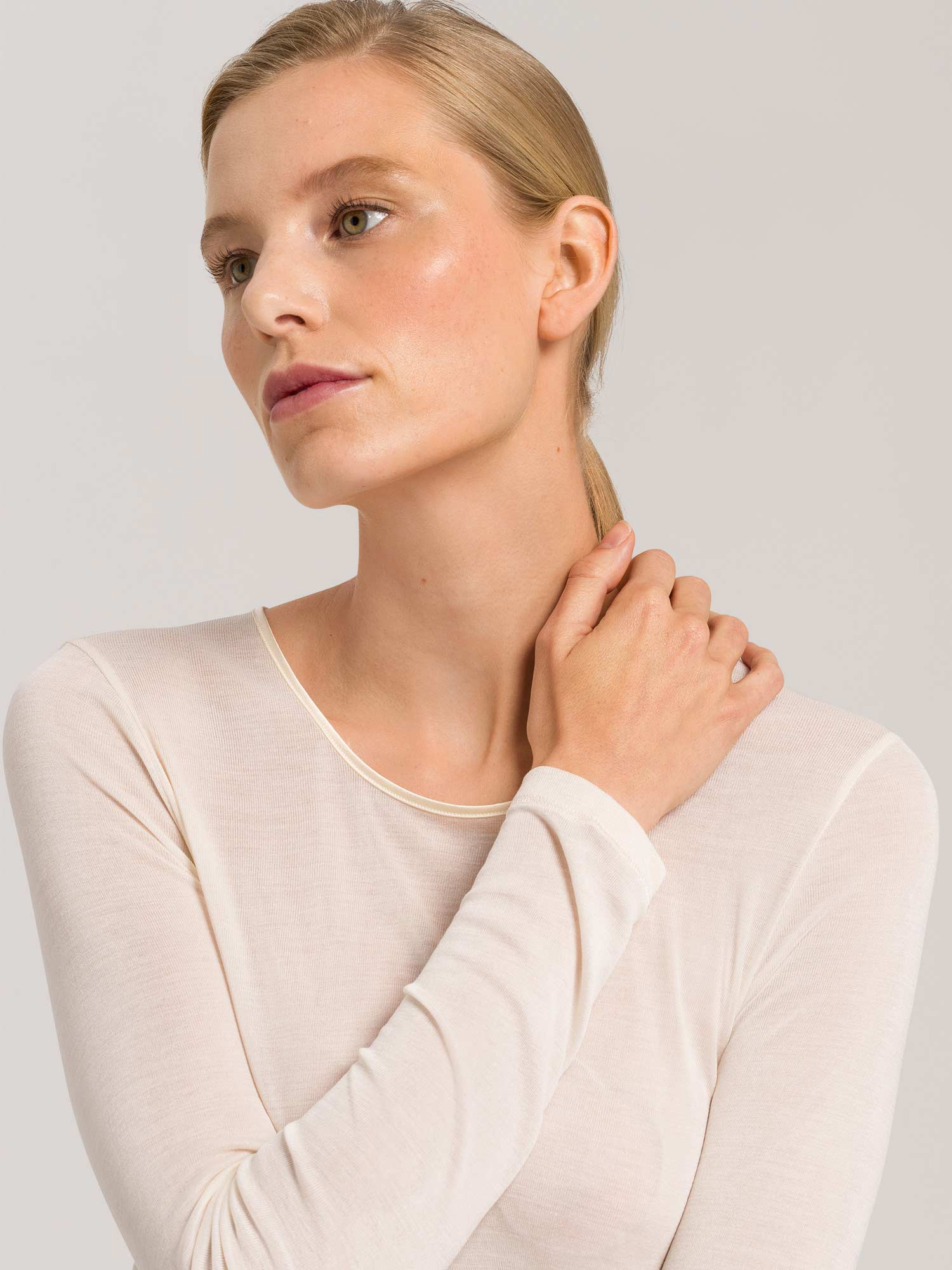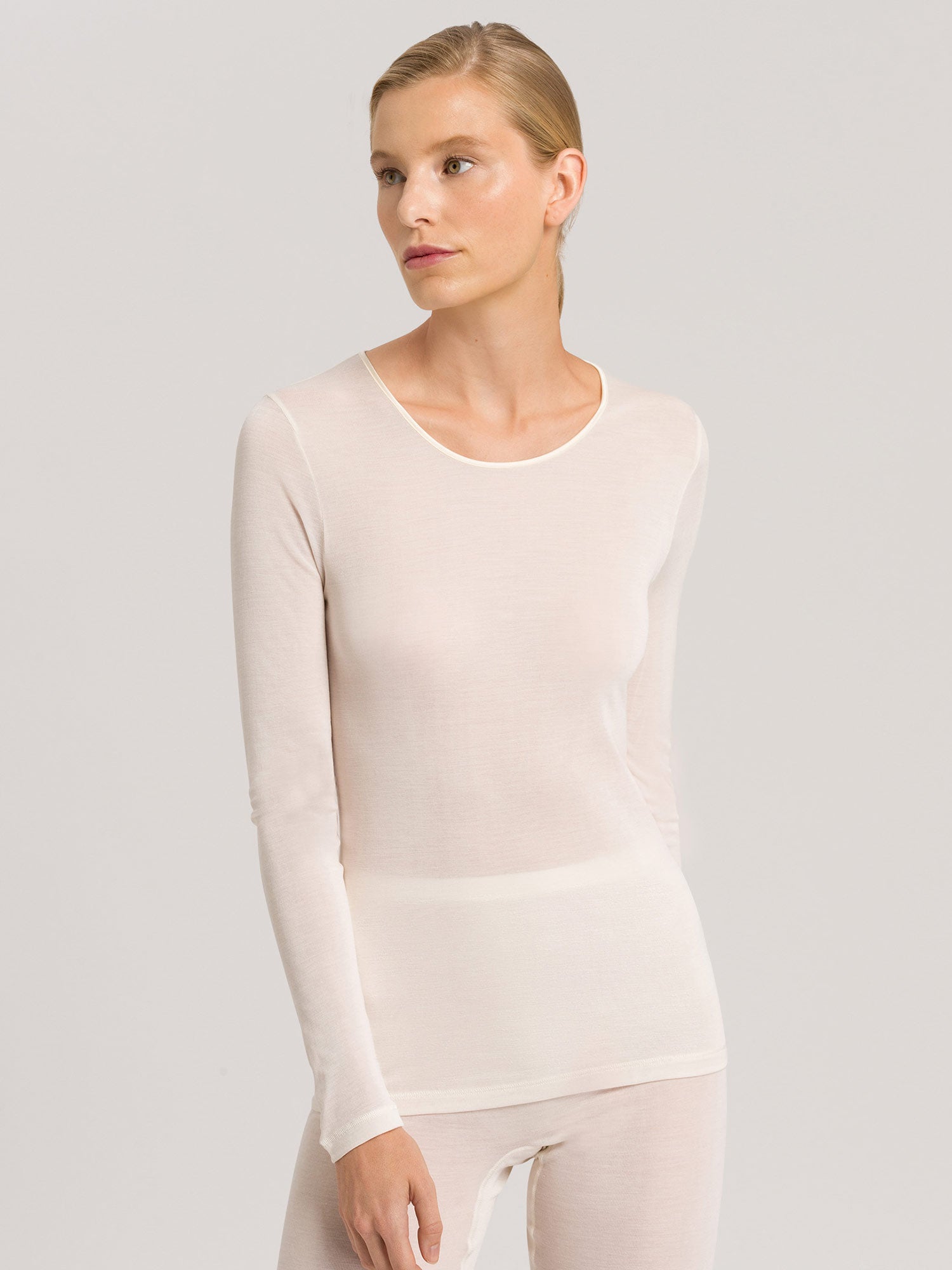 قميص بأكمام طويلة، ياقة دائرية، PURE SILK
