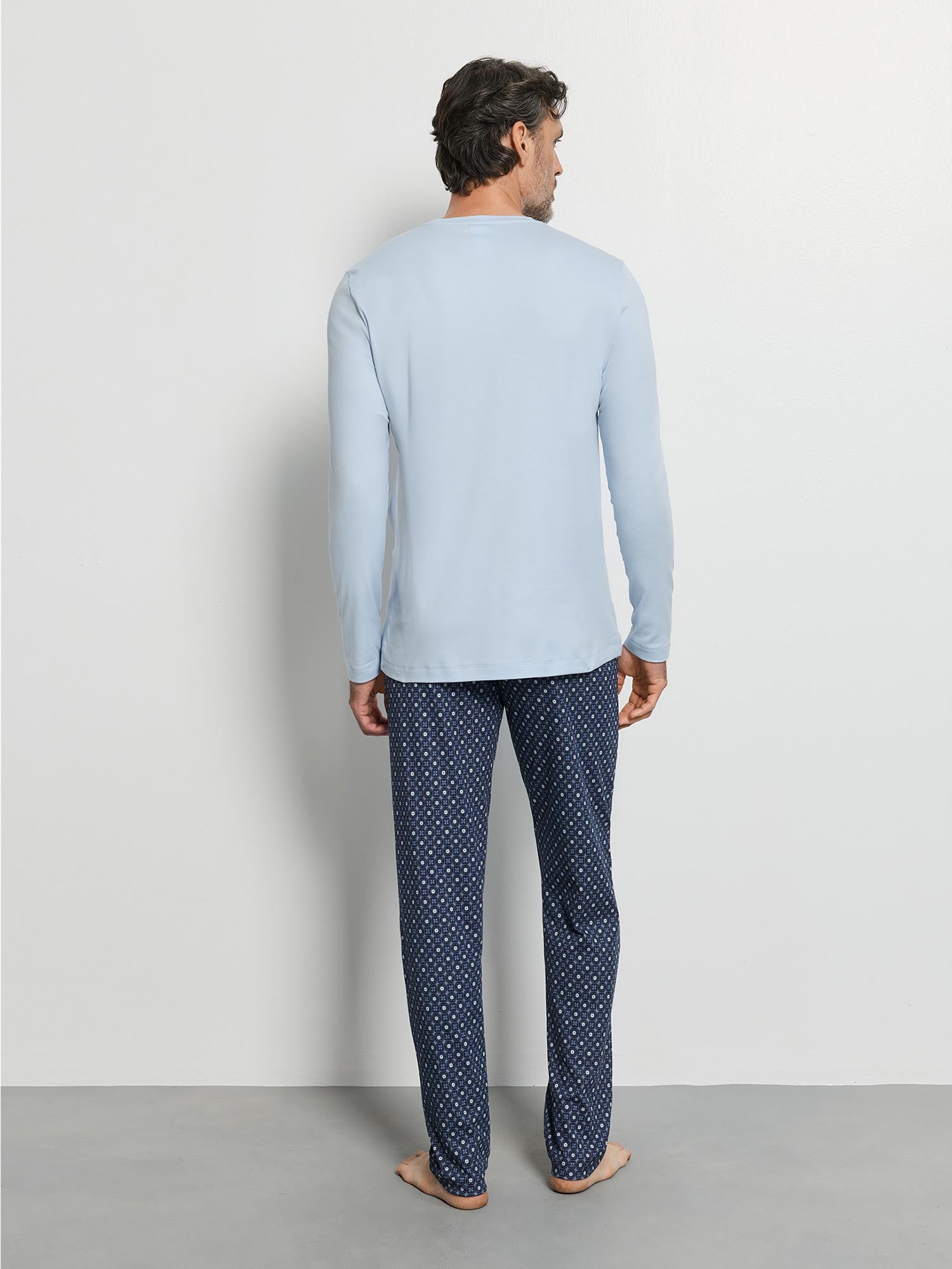بيجاما طويل مع خط رقبة مستدير من القطن الناعم