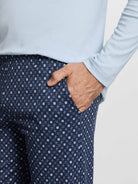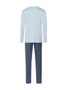مصنوعة من 100٪ قطن عالي الجودة، تتميز البيجاما بملمس ناعم ومريح وراحة في الارتداء مثالي. يشكل القميص ذو الأكمام الطويلة والبسيط مع خط رقبة مستدير تباينًا هادئًا مع السروال المزخرف ويضمن مظهرًا متوازنًا. السروال الطويل ذو الأرجل المستقيمة والجيوب الجانبية العملية والمقعد المريح يجعل المجموعة الرفيق المثالي لأمسيات مريحة وليالي هادئة وساعات مريحة خلال النهار.