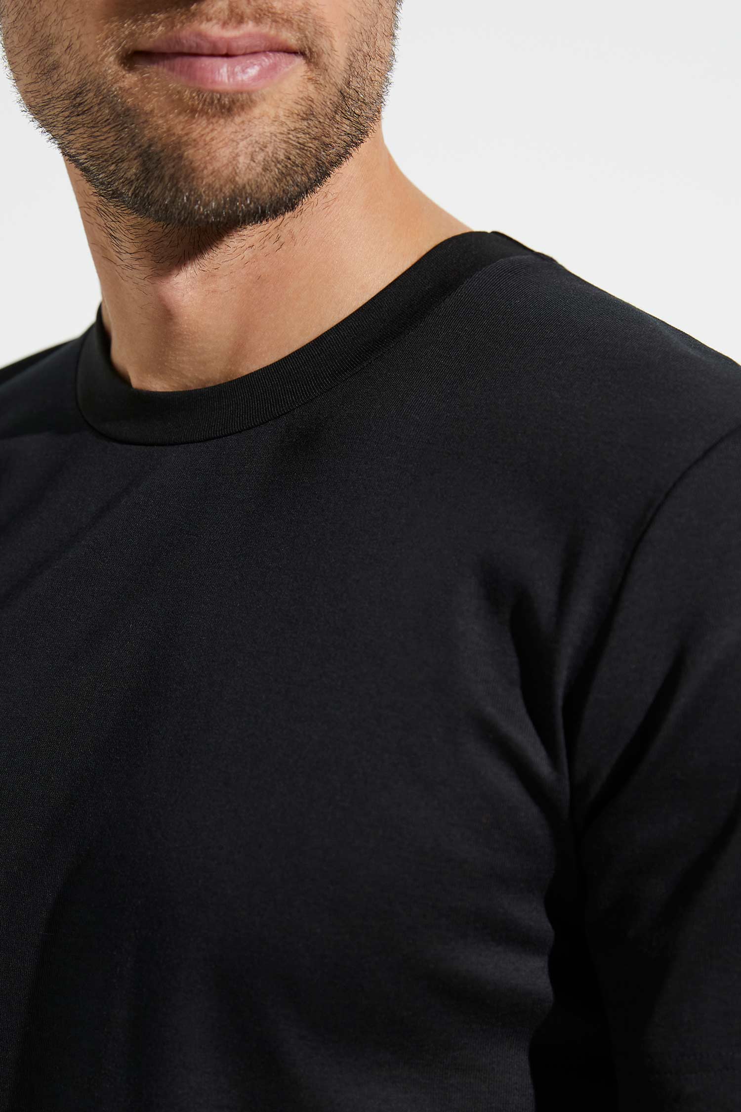 تي شيرت قصير الأكمام أنيق ومناسب أكثر مع نهاية جميلة خط رقبة مستدير. مع درزات مسطحة، مصنوع من قطن ممشط عالي الجودة وغير شفاف. القميص مناسب للارتداء فوق وتحت - مع النهاية الجميلة، يكون مناسبًا بشكل خاص للارتداء تحت القميص عندما يكون الزر العلوي مفتوحًا.