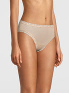 تضيف الدانتيل الفرنسي الرقيق Leavers Dentelle de Calais® لمسة فاخرة على الحزام ونهايات الساقين. بدون درزات جانبية وبتناسب مثالي، يوفر اللباس الداخلي حرية الحركة والشعور بالراحة - بدون تقديم تنازلات على الأناقة والأنوثة. الانزلاق يظهر أن الراحة يمكن أن تكون أيضاً جميلة. وجذابة.