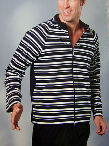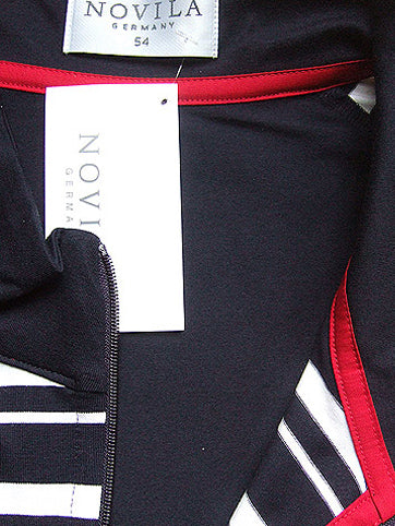 هومدريس أنيق جدًا، خفيف وبالتالي ليس دافئًا جدًا، بلون أزرق بحري داكن (يكاد يكون أسود). الجزء العلوي بسحاب، مع نمط خطوط في الأمام، والجزء الخلفي بلون واحد. شريط زخرفي أحمر مخيط من الداخل.