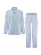 Dieser lange Herren-Pyjama aus 100% gewebter Baumwolle überzeugt mit klarer Linie und hochwertiger Verarbeitung. Das Oberteil ist durchgeknöpft und mit einer aufgesetzten Brusttasche versehen – ein stilvolles Detail, das dem Look eine elegante, maskuline Note verleiht. Die helle, ruhige Farbgebung unterstreicht das zeitlose Design und sorgt für eine gepflegte Optik.