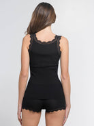 Bezauberndes Tank-Top in Feinripp, mit Dentelle de Calais®-Spitze, aus feinster, Ägyptischer Makò-Baumwolle; aus der Serie FILOSCOZIA FINE RIB von Oscalito