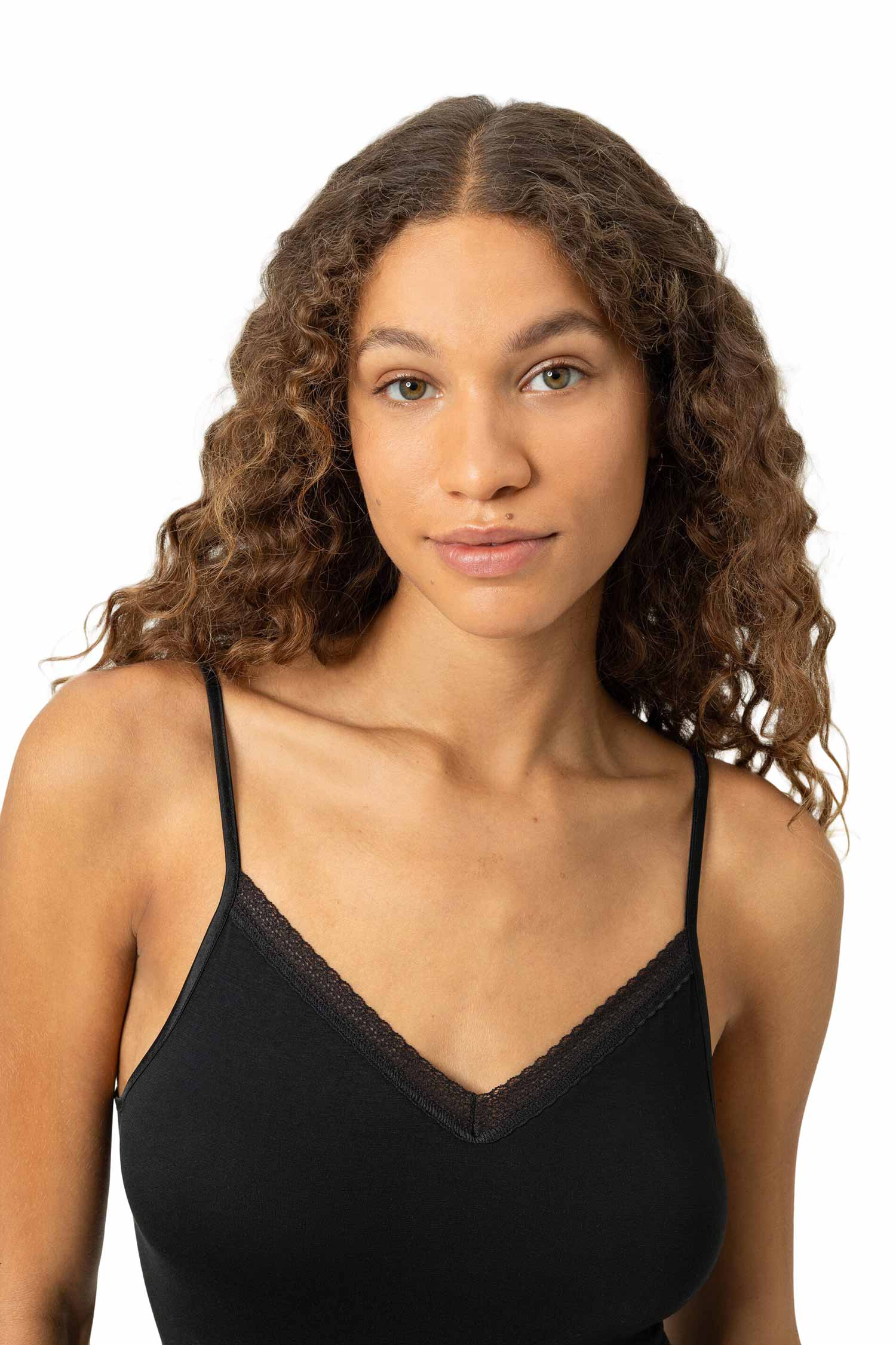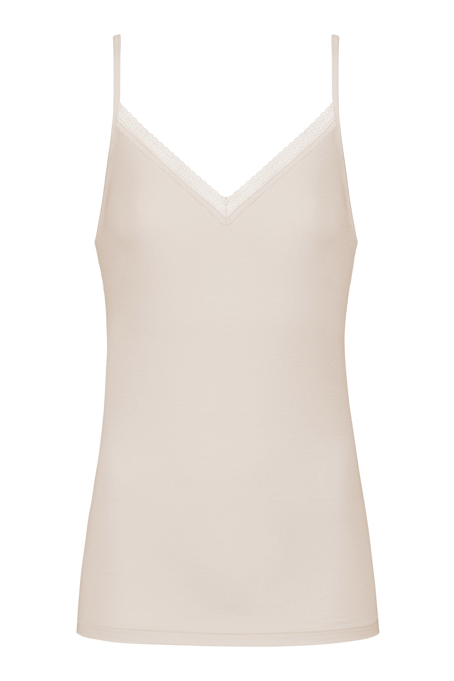 Feminines Spaghetti-Top aus weichem Modal, mit dekorativer Spitze am Dekolleté; aus der Serie MODAL LACE von mey