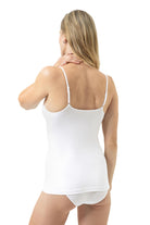 Zart, feminin und unvergleichlich weich: Dieses Spaghetti-Top umschmeichelt Ihre Haut mit luxuriösem Tragegefühl und zeitloser Eleganz. Die seidig-fliessende Modal-Qualität liegt federleicht auf dem Körper, während der V-Ausschnitt mit feiner Spitze im Dekolleté verführerische Akzente setzt – stilvoll und niemals aufdringlich.