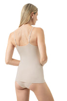 Dank der nahtlosen Verarbeitung an den Seiten schmiegt sich das Top perfekt an und bleibt selbst unter enger Kleidung unsichtbar. Verstellbare Träger sorgen für eine individuelle Passform und höchsten Komfort. Ob als edles Darunter, zartes Loungewear-Piece oder stilvolles Top zum Kombinieren: Dieses Spaghetti-Top vereint moderne Sinnlichkeit mit maximalem Wohlgefühl.