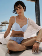 Zart wie ein Flügelschlag, frisch wie der Frühlingshimmel: In der Trendfarbe Blue Dove entfaltet dieser Mini Slip seine verführerisch-leichte Ausstrahlung. Die Vorderseite aus edler französischer Textronic-Spitze setzt feminine Akzente, während die Rückseite aus elastischer, weicher Baumwolle höchsten Tragekomfort schenkt.