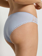 Moderner Mini-Slip aus Singley-Jersey-Baumwolle mit zarter Spitze, aus der Serie MOMENTS von HANRO, in Sommer-Farbe blue dove