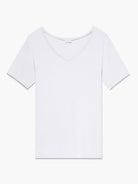 Das zeitgemässe Design mit femininem V-Ausschnitt verleiht dem Shirt eine moderne Leichtigkeit, während das Halsband aus Hauptstoff für einen besonders cleanen, hochwertigen Look sorgt. Die glatte Oberfläche und die anschmiegsame Passform machen es zum idealen Begleiter für elegante Alltags-Outfits, entspannte Freizeitlooks oder leichte sportliche Aktivitäten.