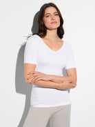 Dank seiner klaren Linie lässt sich das Shirt vielseitig kombinieren – solo getragen oder als edles Basic unter Blazern, Strick- oder Sommerjacken. Ein echtes Lieblingsstück für den Sommer: pur, bequem und stilvoll zugleich.