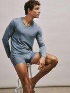 Durch ergonomische Seitennähte und den komfortablen Bundgummi verspricht diese Unterhose eine perfekte Passform. Die trendige Herbstfarbe cliff grey, ein spannendes Graublau, bringt Frische und Abwechslung in Ihr Wäschesortiment.