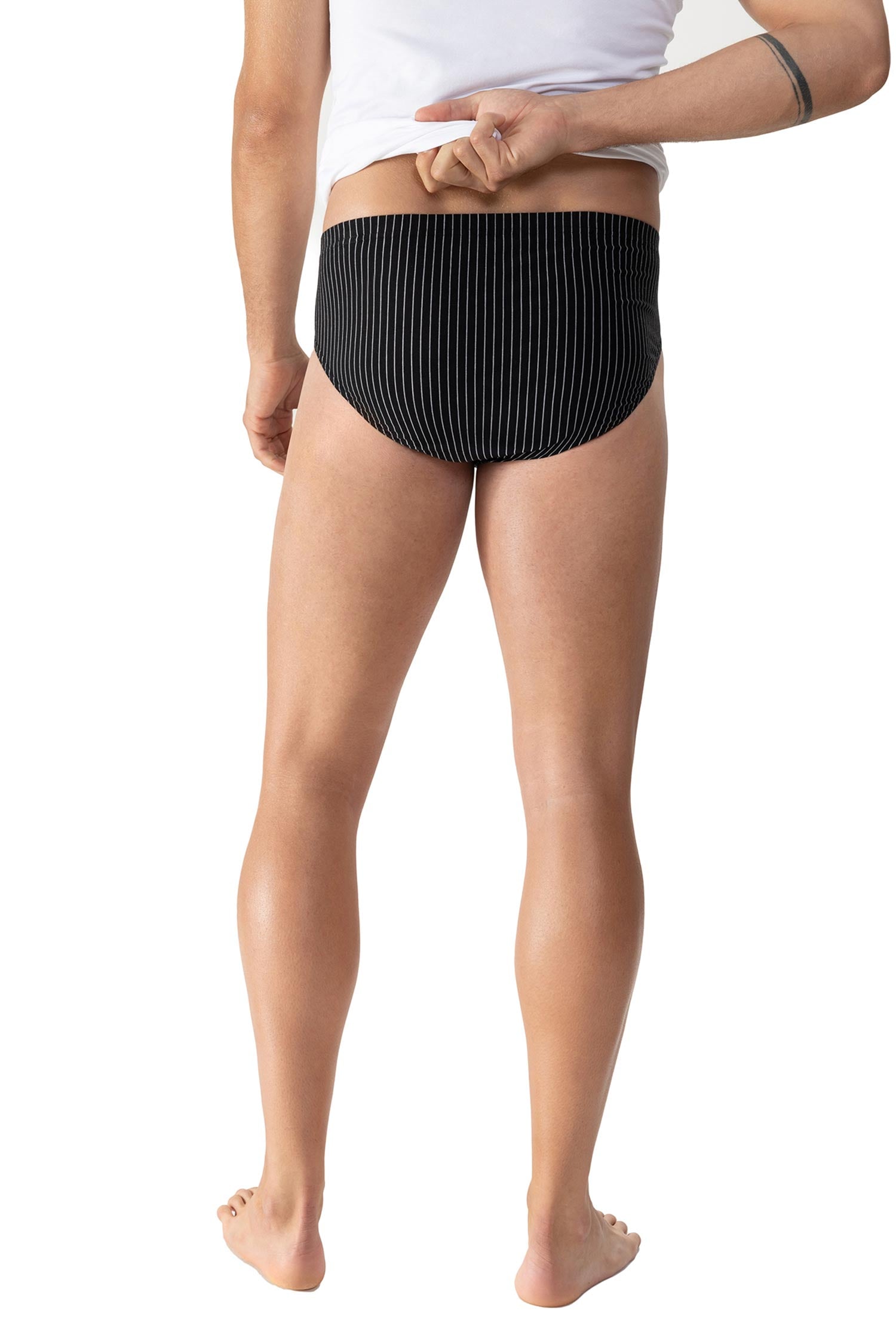 Diese klassisch geschnittene Jazz-Pants in elegantem Schwarz mit feinen weissen Streifen vereint stilvolles Design mit bewährter mey-Qualität. Durch den hohen Anteil an Baumwolle ist dieser Slip besonders atmungsaktiv und hautfreundlich. Der maskuline Schnitt mit hohem Beinausschnitt und der ummantelte Komfortbund sorgen für einen perfekten Sitz, der durch flache Beinabschlüsse abgerundet wird.