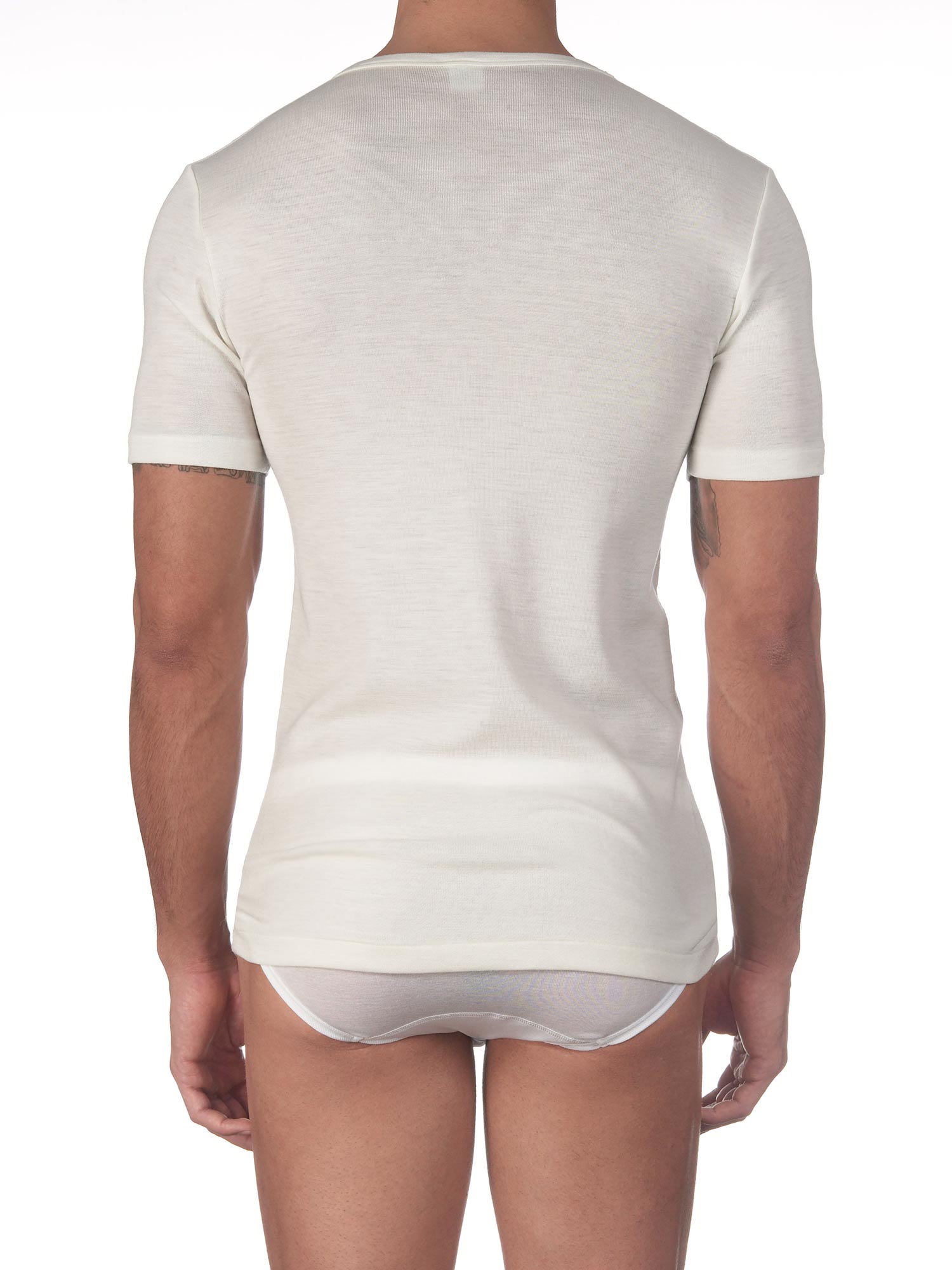 Short-sleeve V-neck shirt from the EXTRA FINE MERINO WOOL SUPER 100S series by Oscalito