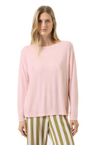 The high-quality modal quality combined with finely tuned satin details at the round neck ensures a luxurious feel and a subtle sheen. The loose fit and long sleeves give the shirt a modern, relaxed silhouette – ideal for stylish everyday looks or elegant layering styles.