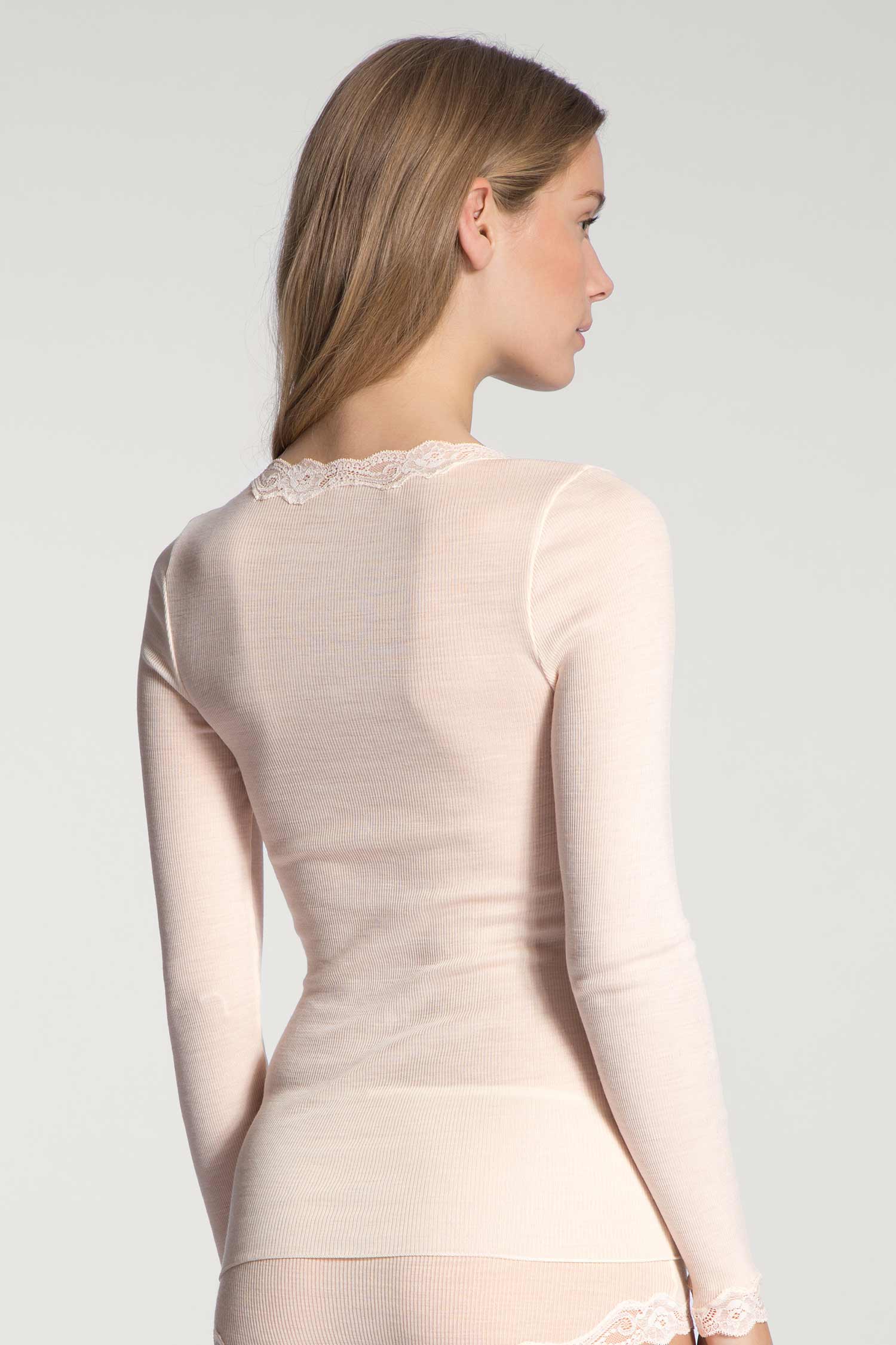 These pieces adapt to the body's climate and have a temperature-regulating effect – ideal not only in the cooler season! Elegant accents are provided by lace details at the neckline and sleeves, while the 2:2 fine rib ensures a snug, perfect fit.