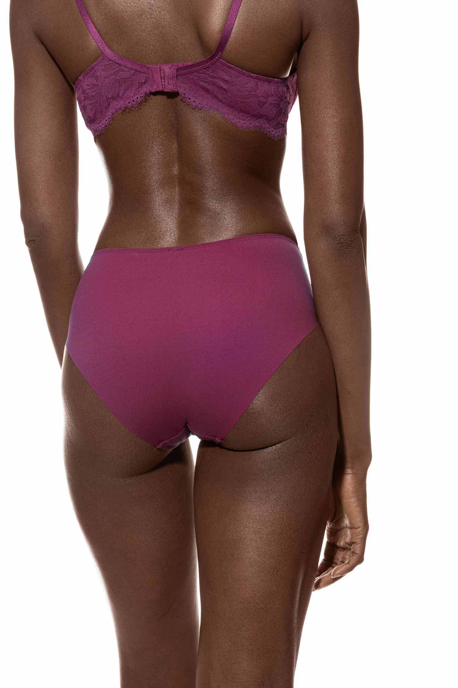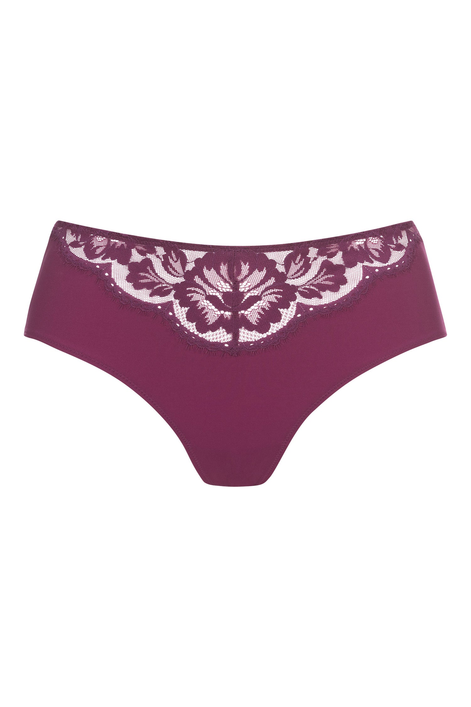Made from fine materials, sophisticated cuts, and enchanting colors, mey creates lingerie dreams that are convincing in every way. In this American Pant with a low waist, a transparent, floral lace insert on the front provides that certain something.