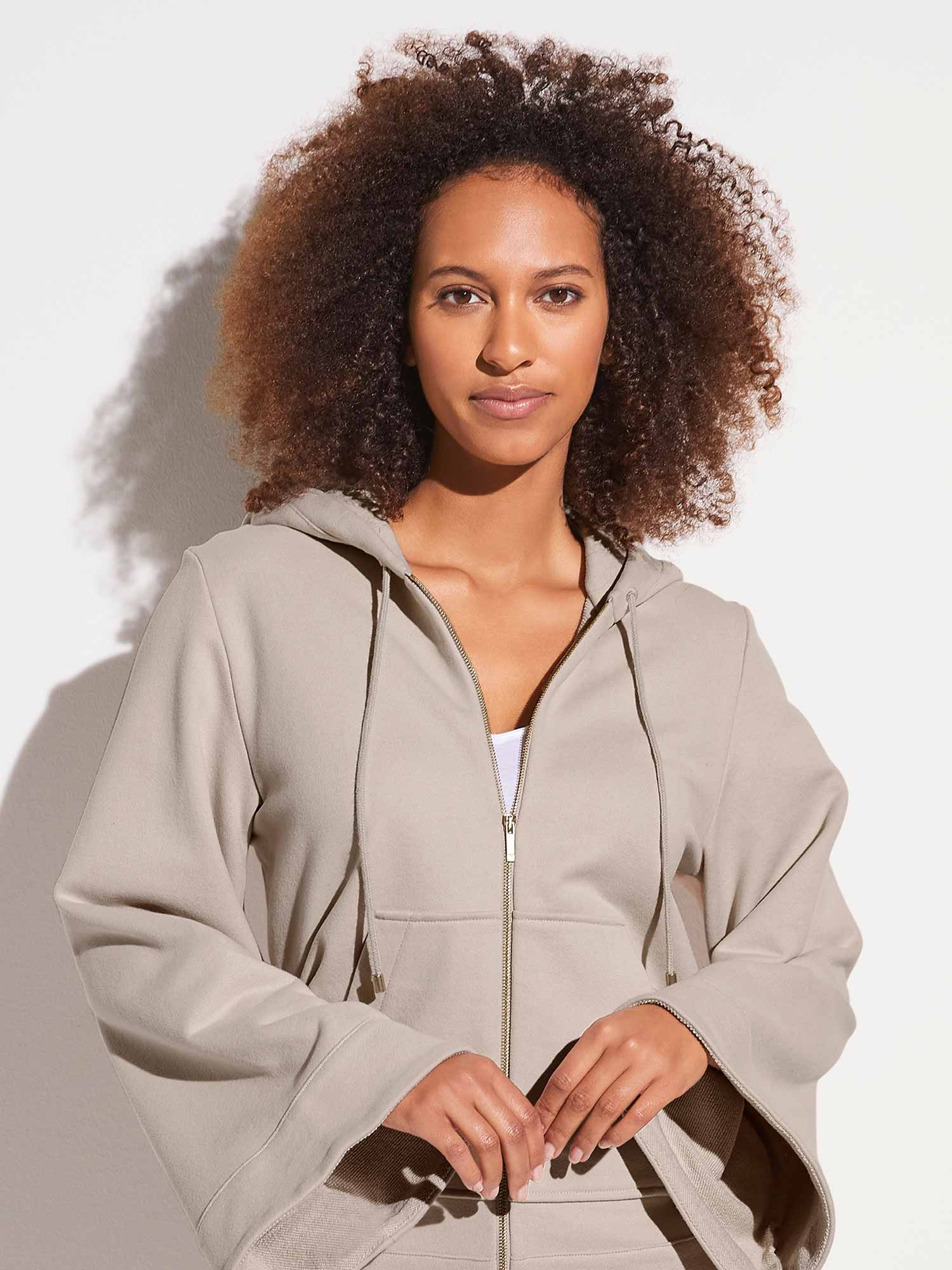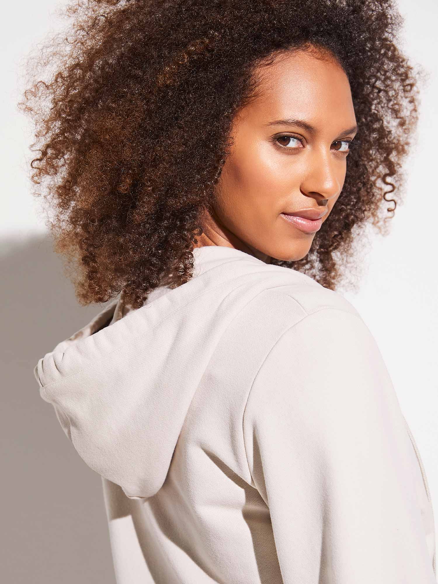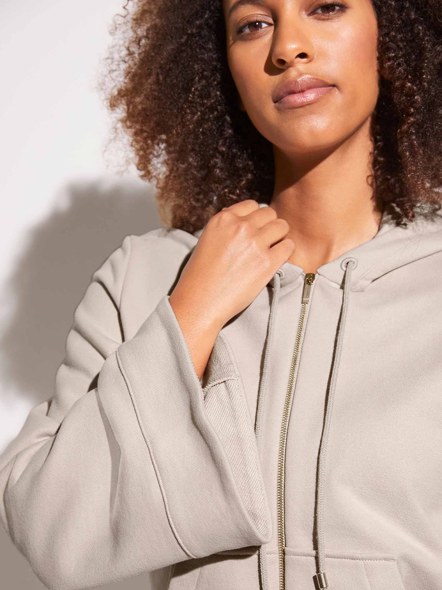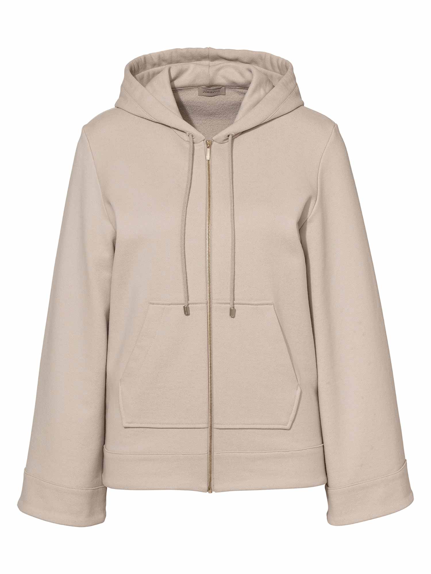 Versatile, cream-colored leisure Jacket from the COZY-LOUNGE line. Be convinced by the dynamic and fresh look of these comfortable Jacket! Their modern design details include wide, flared sleeves (ideal for typing on the keyboard in the home office), the hood with drawstring, and the full-length zipper with Zimmerli logo.
