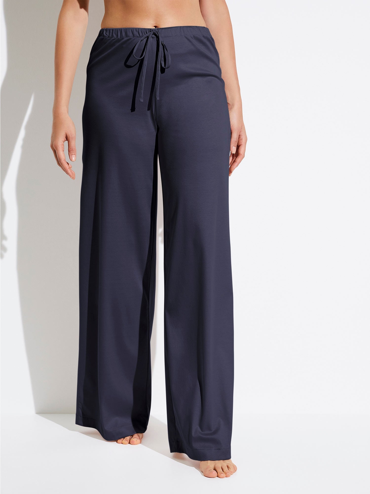 Elegant, silky shiny leisure pants that impress with straight-cut, wide legs and a loose, comfortable fit. The tunnel waistband with drawstring ensures a perfect, individually adjustable fit. Practical side pockets promise additional comfort. Sea Island cotton grows only on the West Indian Caribbean islands and is carefully handpicked there.