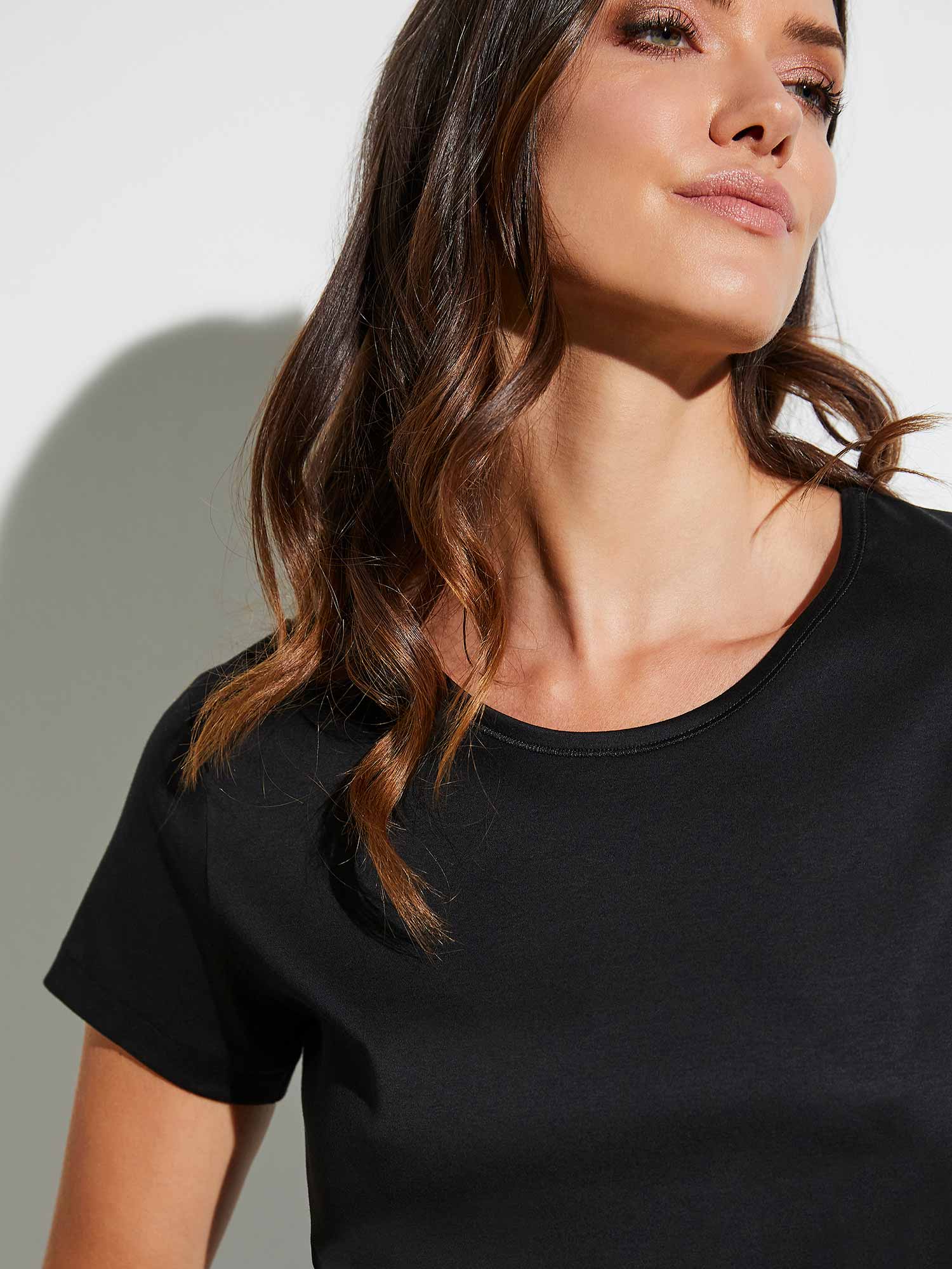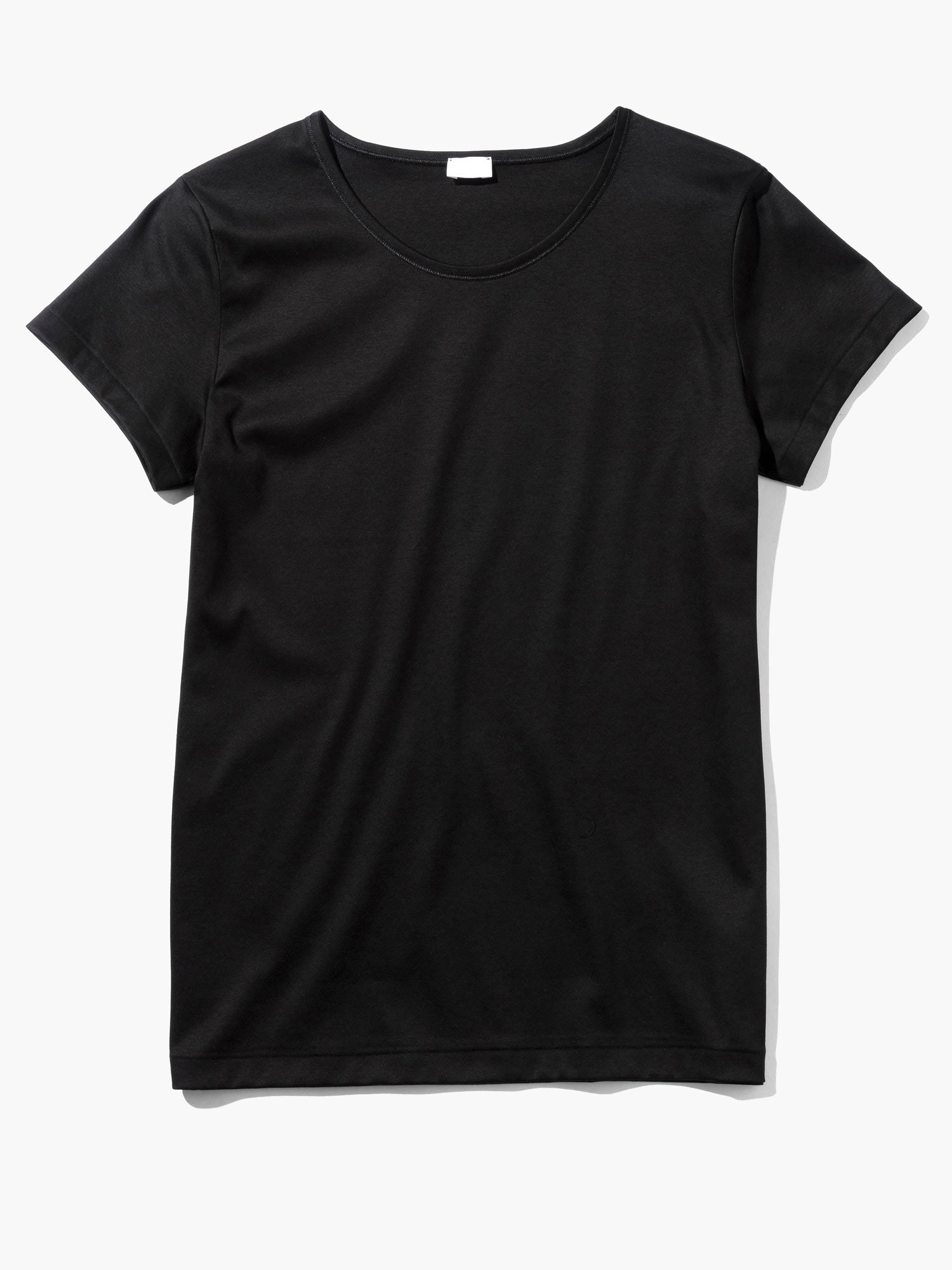 Minimalist shirt made from Sea Island Cotton with slightly shiny satin finishes on the neck and armholes. The softness of Sea Island cotton can be compared to cashmere or silk. This shirt thus becomes an incomparably luxurious piece of perfection and can also be worn outside.