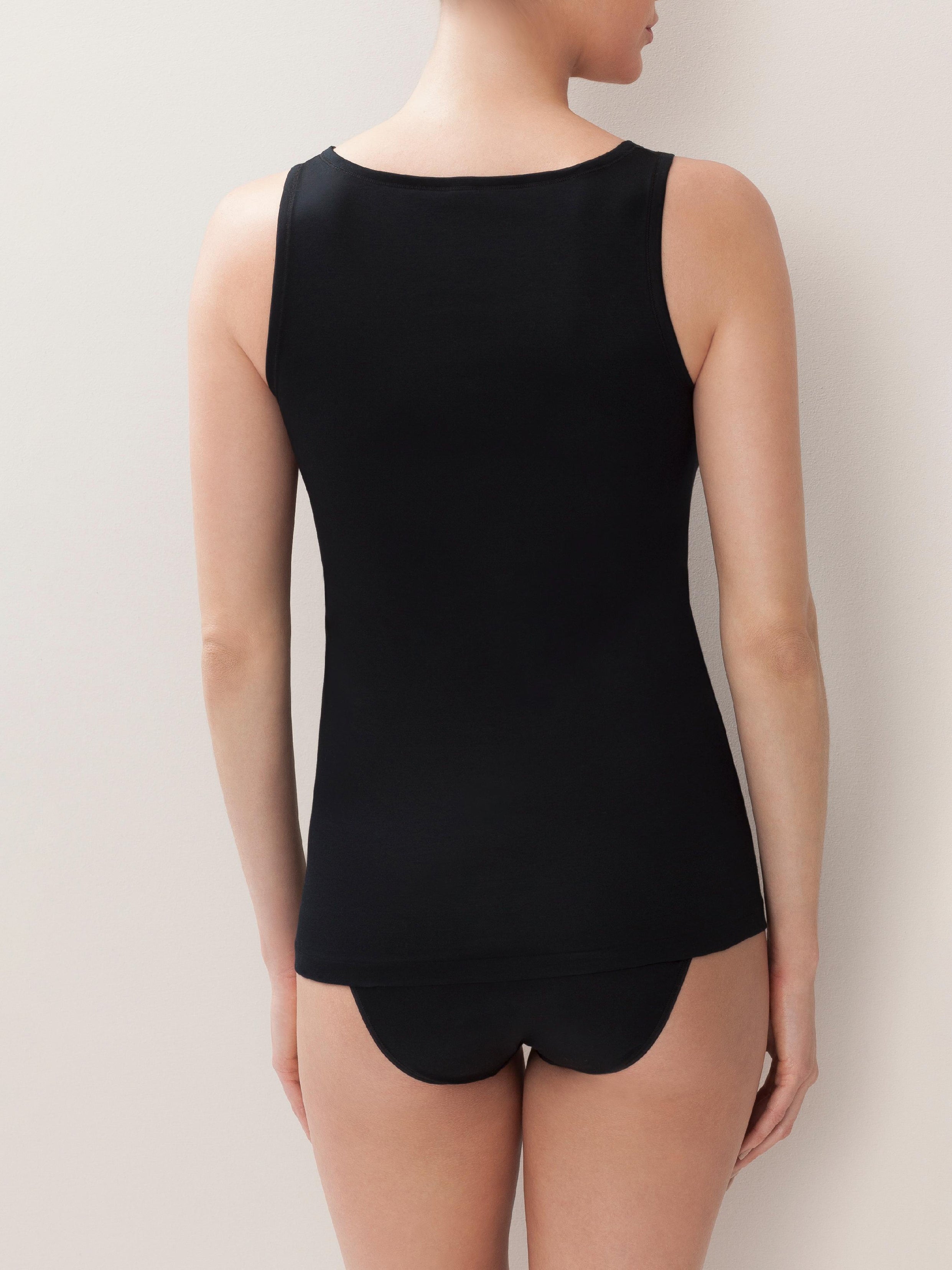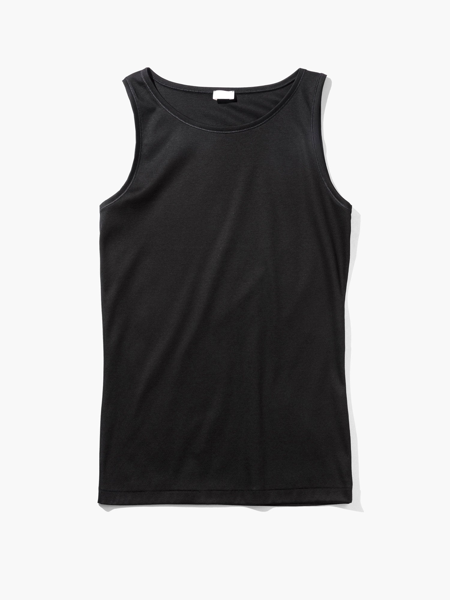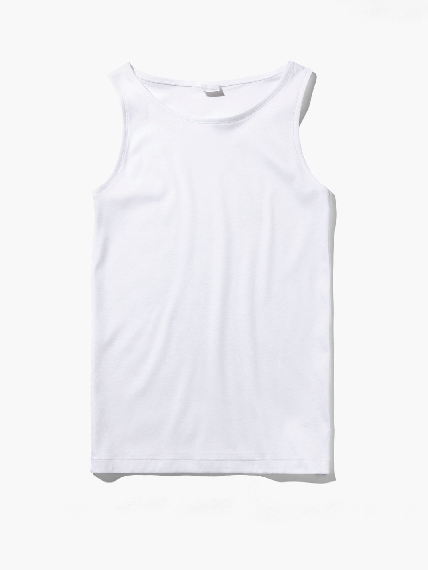Minimalist Top made from Sea Island Cotton with slightly glossy satin finishes on the neck and armholes. The fineness of Sea Island cotton can be compared to cashmere or silk. This makes this Top an incomparably luxurious piece of perfection that can also be worn on the outside.