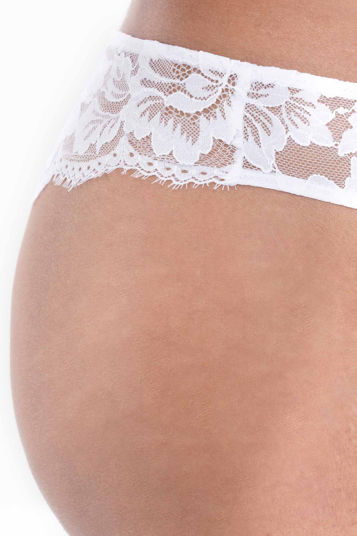À première vue, cette culotte séduisante montre qu'elle a été créée avec beaucoup de passion pour une lingerie étonnamment belle, une créativité exceptionnelle et un sens du détail. Avec ce Chaîne en dentelle complète florale légèrement transparente, mettez en valeur votre aura sensuelle sans renoncer au plus haut confort de port. La ceinture plate qui ne coupe pas et une doublure en coton à l'intérieur de l'entrejambe assurent cela. Offrez-vous ce rêve de lingerie luxueusement brillant en matériau de la plus haute qualité !
