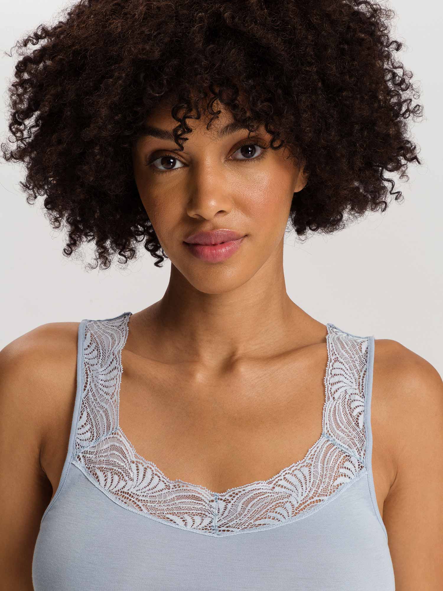 Débardeur en coton mercerisé avec délicate dentelle de la série COTTON DELIGHT de HANRO dans la couleur estivale fraîche sea breeze