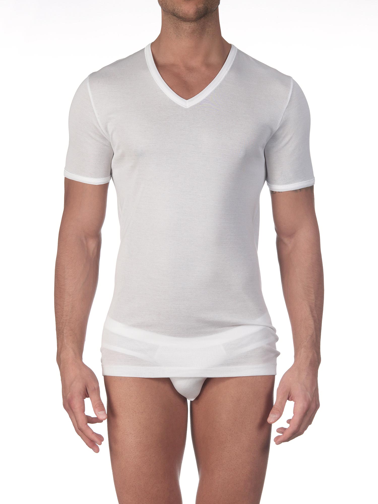 Beeindruckendes V-Neck-Shirt aus feinster Makò-Baumwolle, aus der Serie FILOSCOZIA von Oscalito