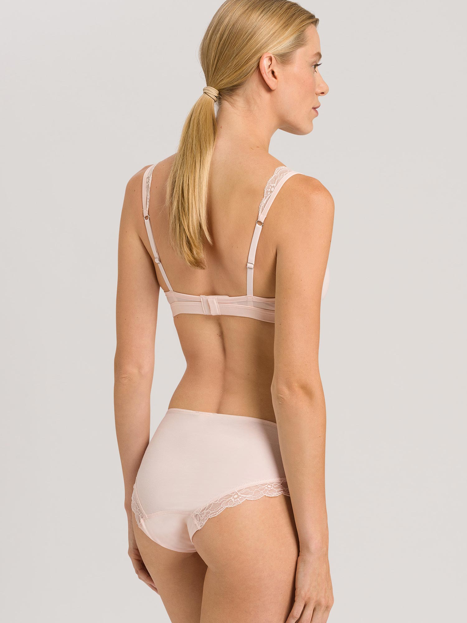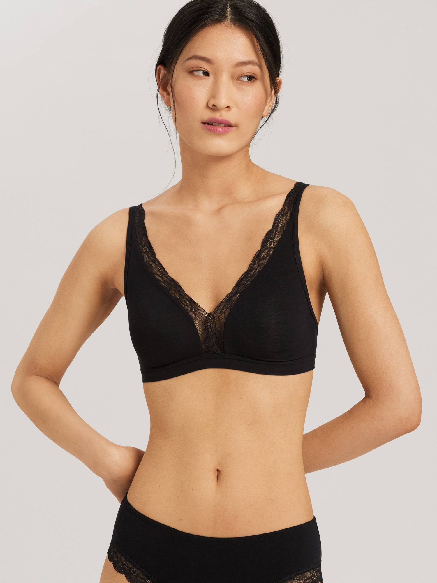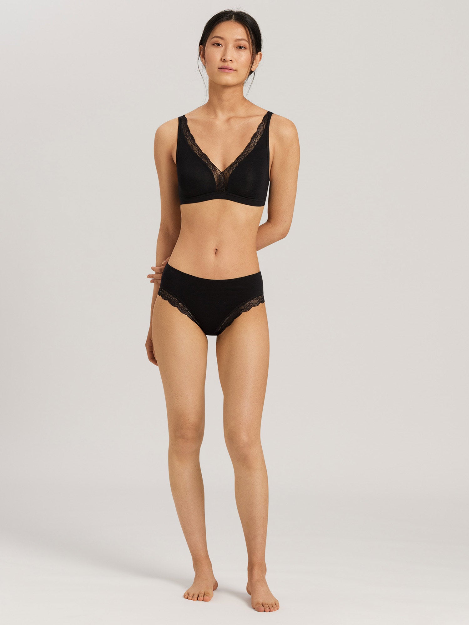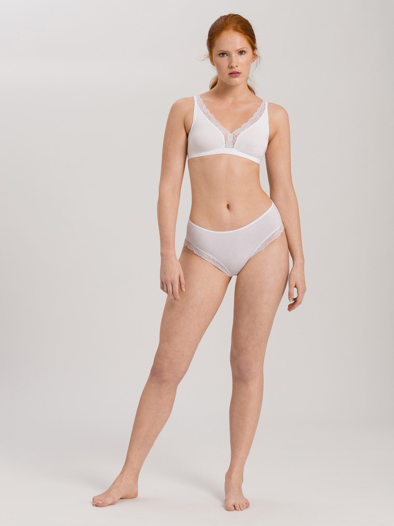 La série COTTON LACE de HANRO est une combinaison de coton de haute qualité avec des inserts en dentelle discrète; une qualité douce et élastique avec un fantastique confort de port. La fabrication innovante du soutien-gorge en coton Spacer est unique. La dentelle insérée dans la partie arrière des slips permet des finitions particulièrement plates. Les styles peuvent être parfaitement combinés non seulement entre eux, mais aussi avec les séries basiques HANRO COTTON SENSATION et INVISIBLE COTTON.