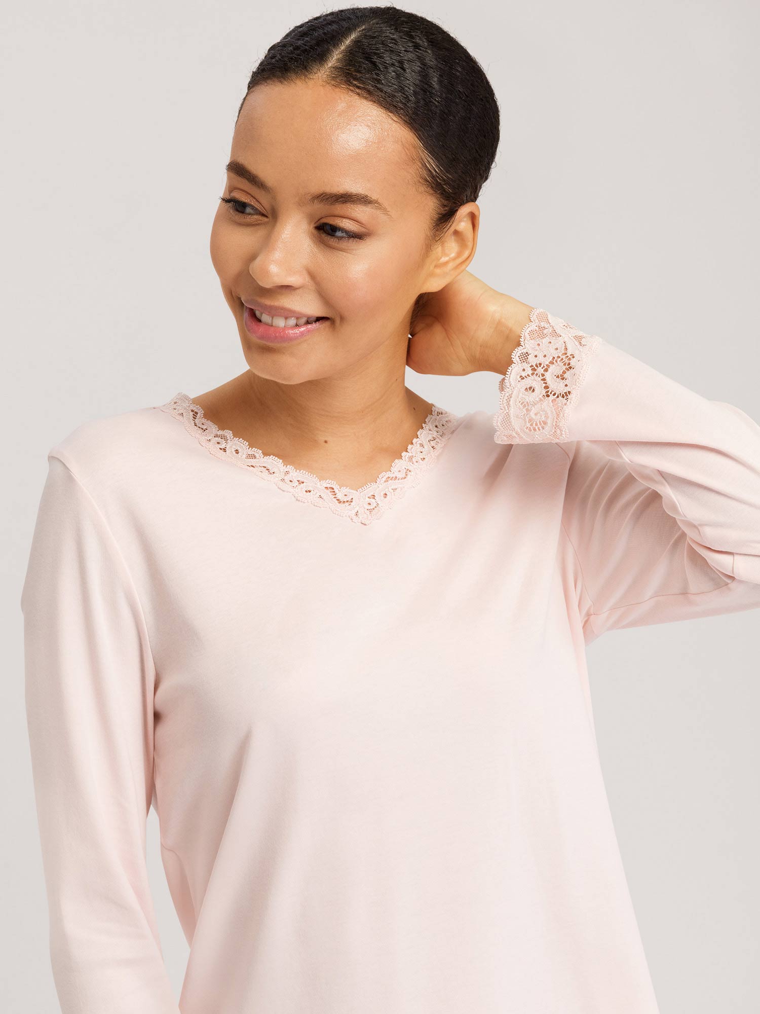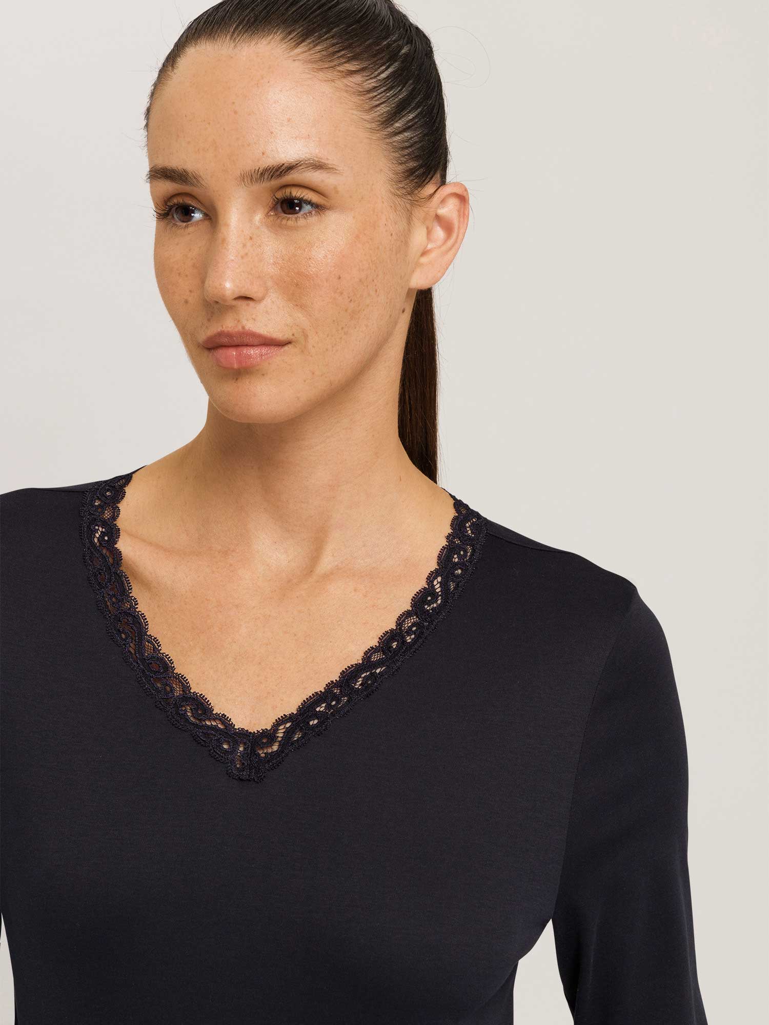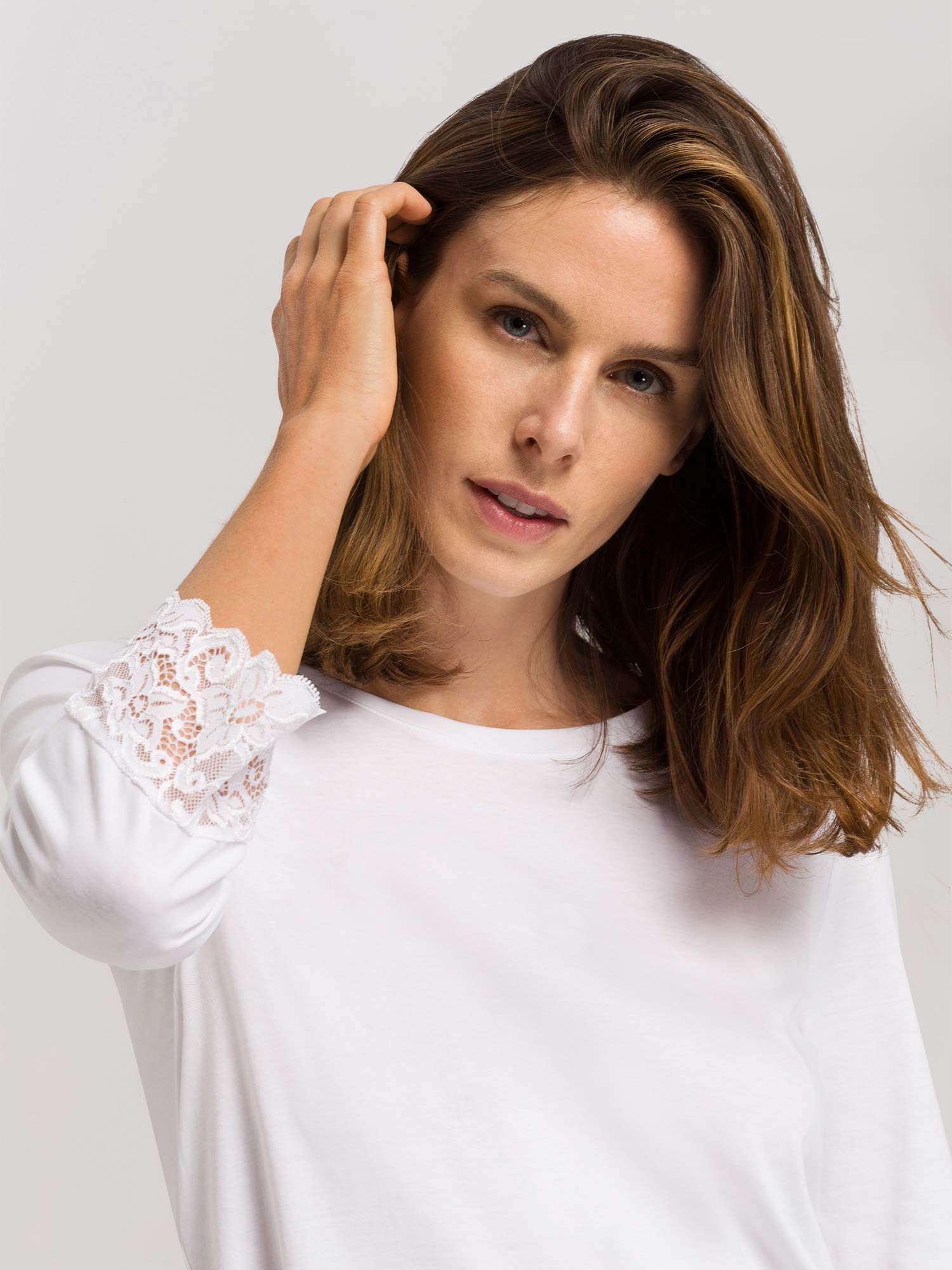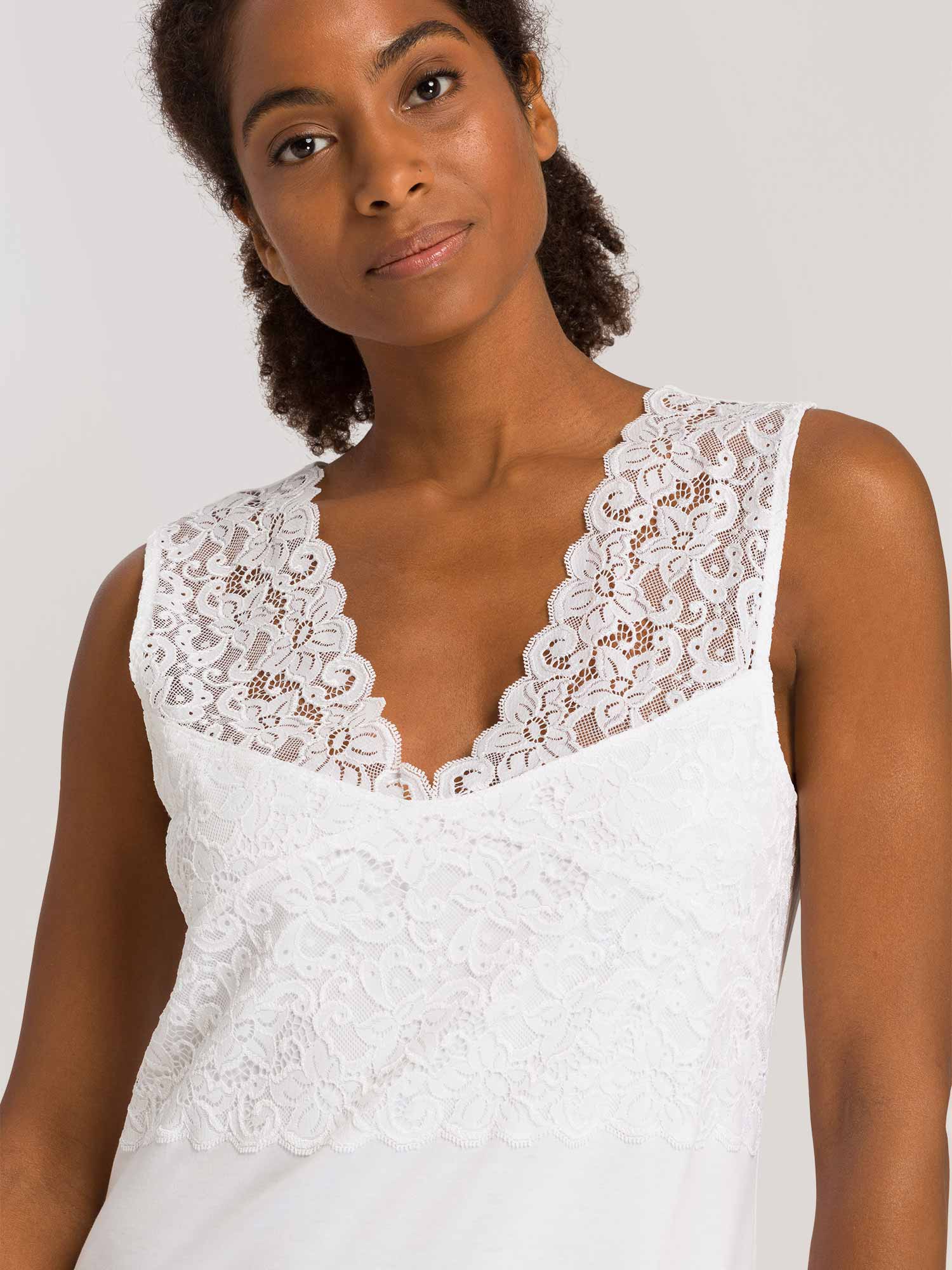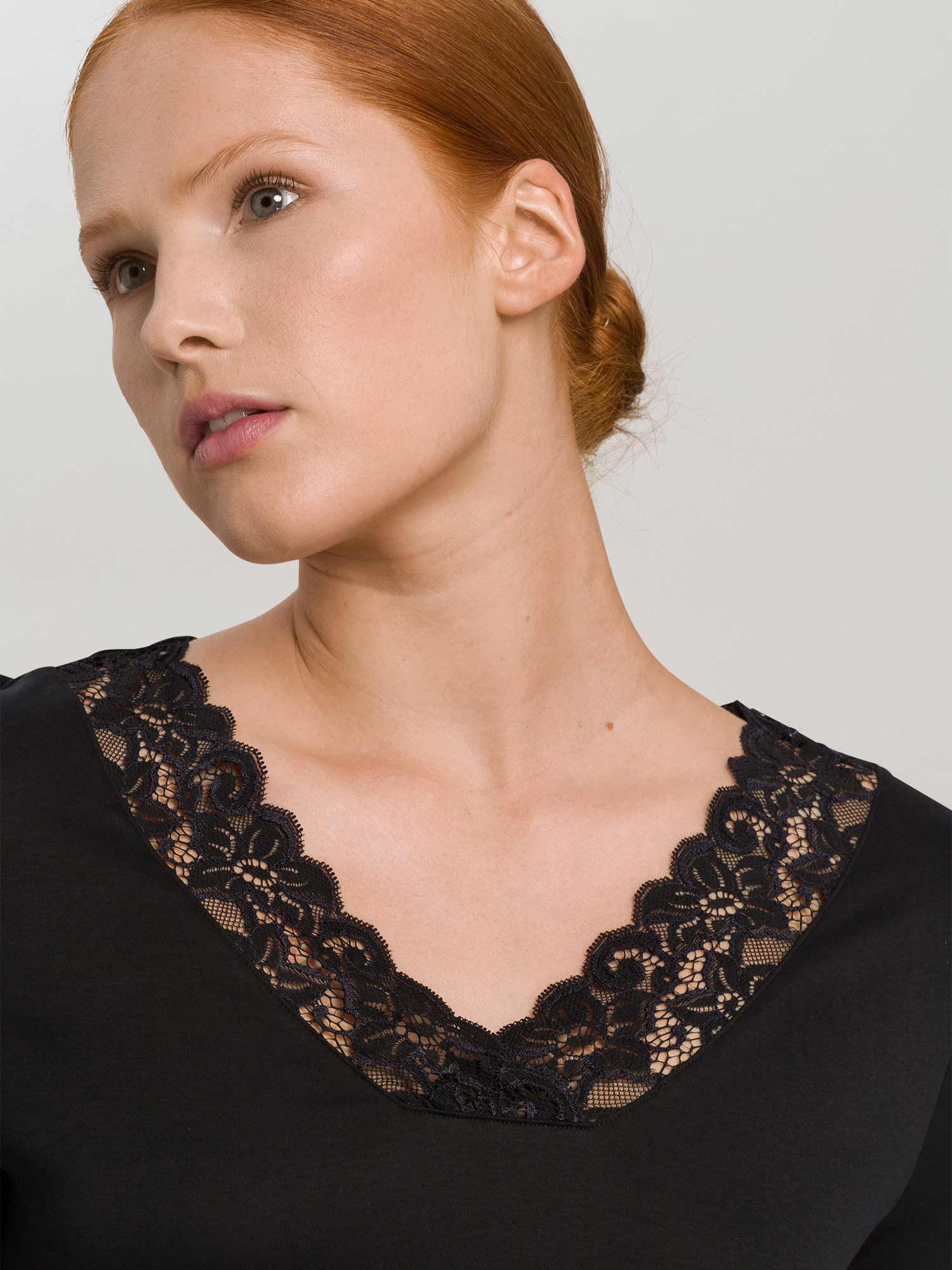Série noble Femmes-Lingerie de nuit de HANRO en 100% coton mercerisé. Les modèles se distinguent par des empiècements en dentelle super-douce et des finitions en satin. Les coupes permettent une liberté de mouvement confortable.