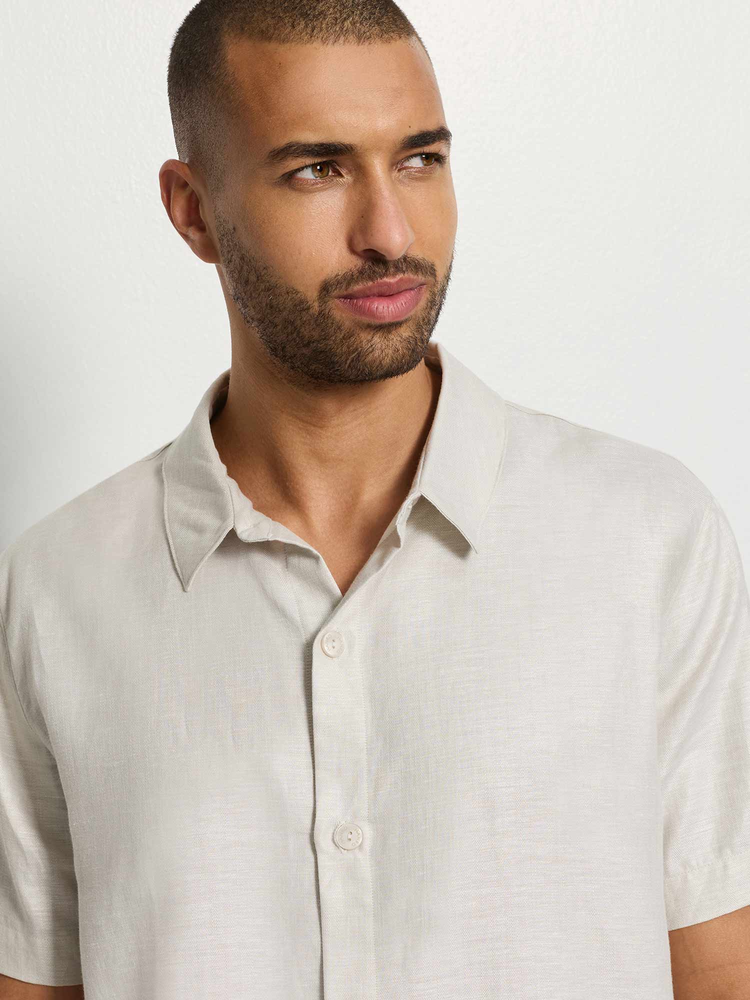 Légère pour l'été, moderne et merveilleusement polyvalente : Cette chemise à manches courtes de couleur naturelle "sandy" est le compagnon parfait pour les journées chaudes – que ce soit à la maison, en ville ou en vacances. Le mélange de coton et lin de haute qualité a un effet agréablement rafraîchissant, respirant et léger, vous permettant de vous sentir libre et frais même sous un soleil éclatant.