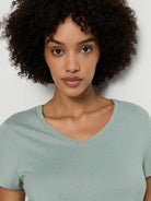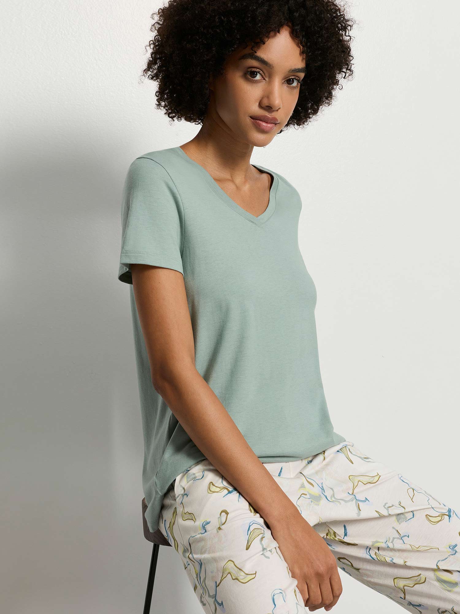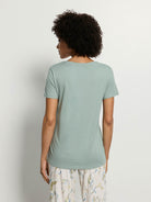 T-shirt polyvalent à col en V, de la série HANRO SLEEP & LOUNGE, en couleur estivale "dark seafoam"
