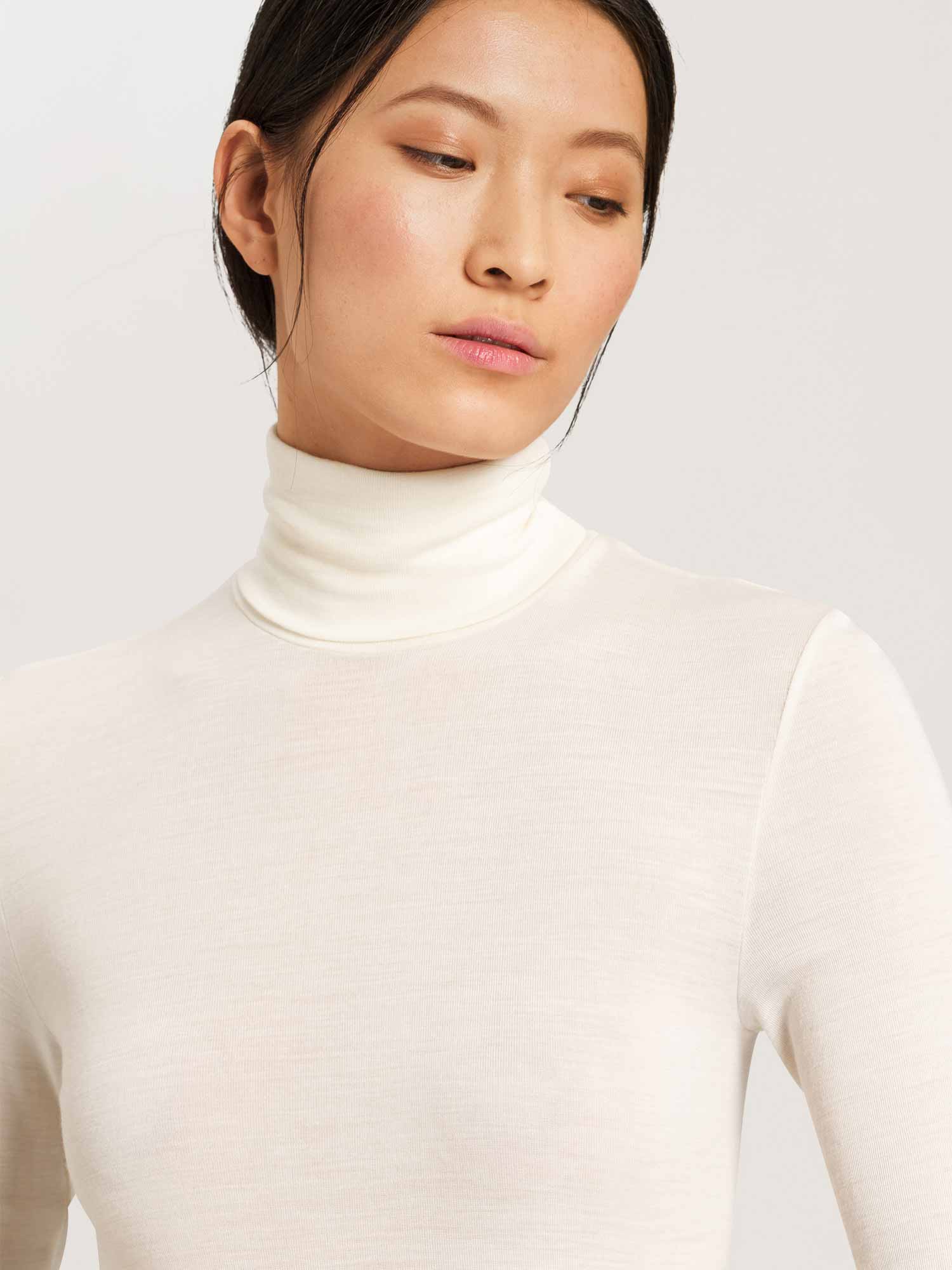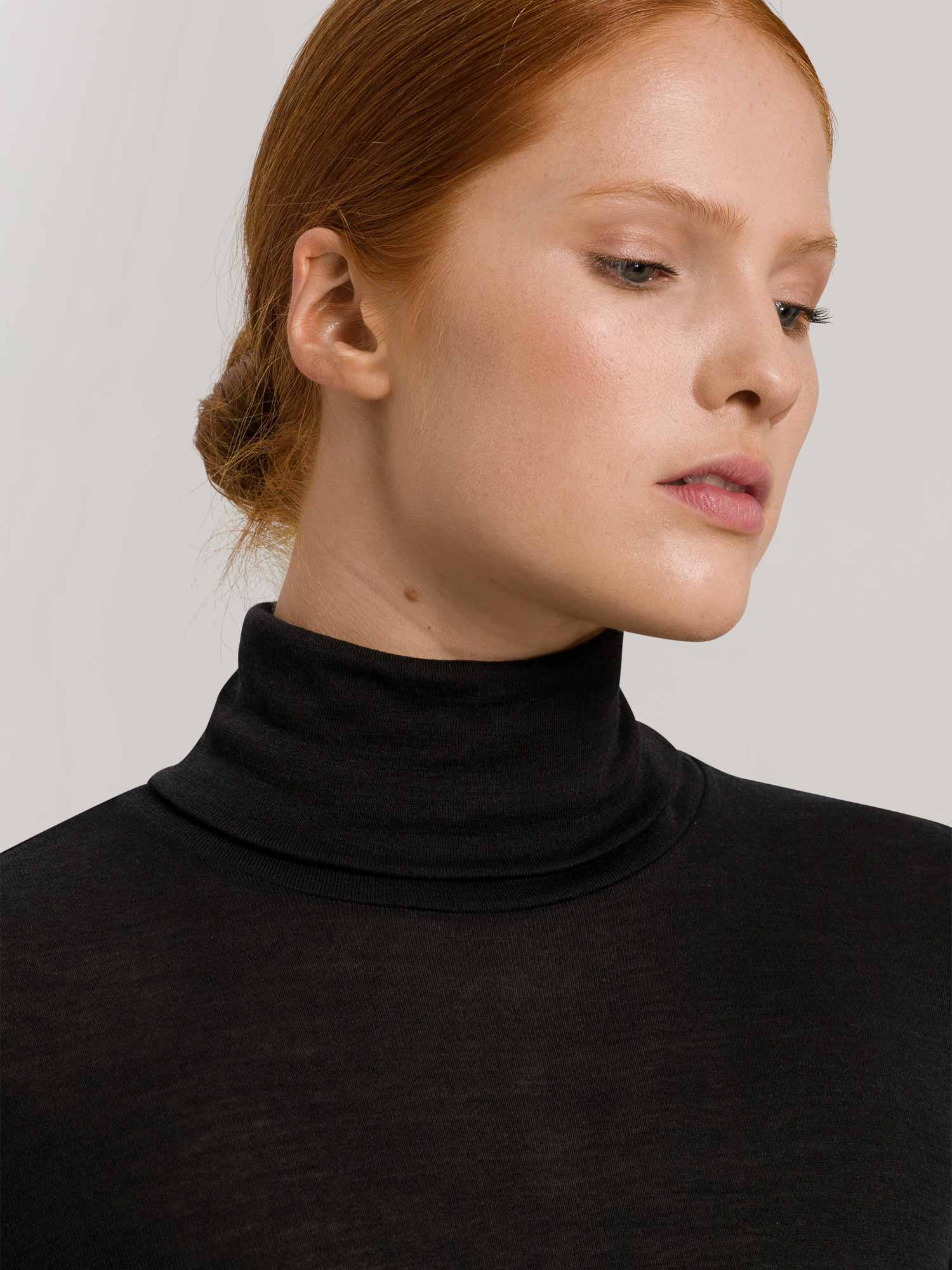 Ce pull à col roulé en matériaux de haute qualité et régulant la température est optimal comme sous-vêtement fonctionnel – par exemple pour les sports d'hiver. Grâce à son look classique et élégant, il peut également être porté au quotidien. La confection sans coutures latérales assure un expérience de port extrêmement confortable et le mélange de matériaux ne gratte pas, se lave délicatement et porte le label OEKOTEX®-Made-in-Green.