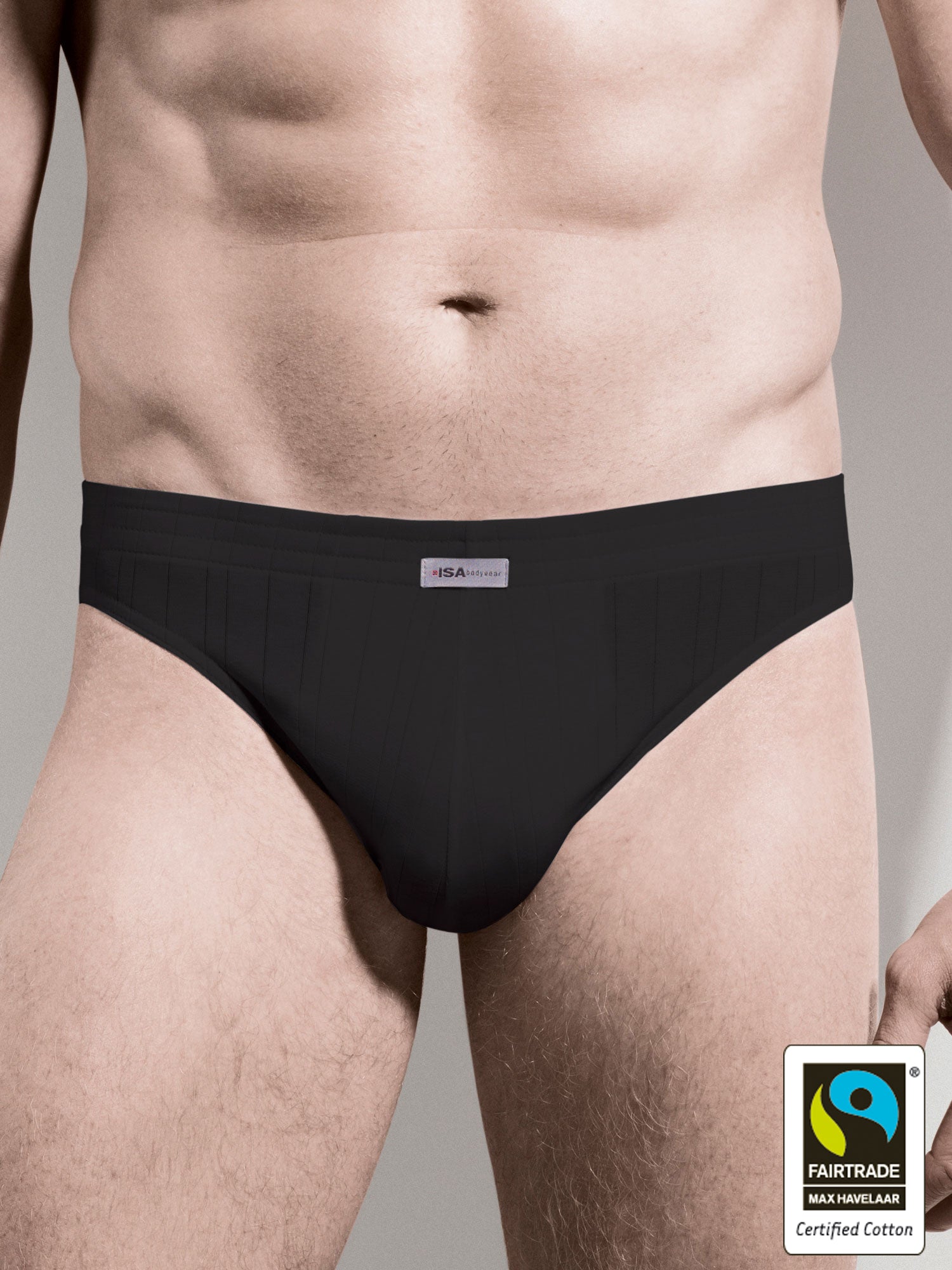 Slip classique, fabriqué en coton biologique Fairtrade de la meilleure qualité. Avec une part d'élasthanne pour une coupe parfaite et douce pour la peau. Ceinture à quatre aiguilles et rayures tissées. La partie avant est doublée.