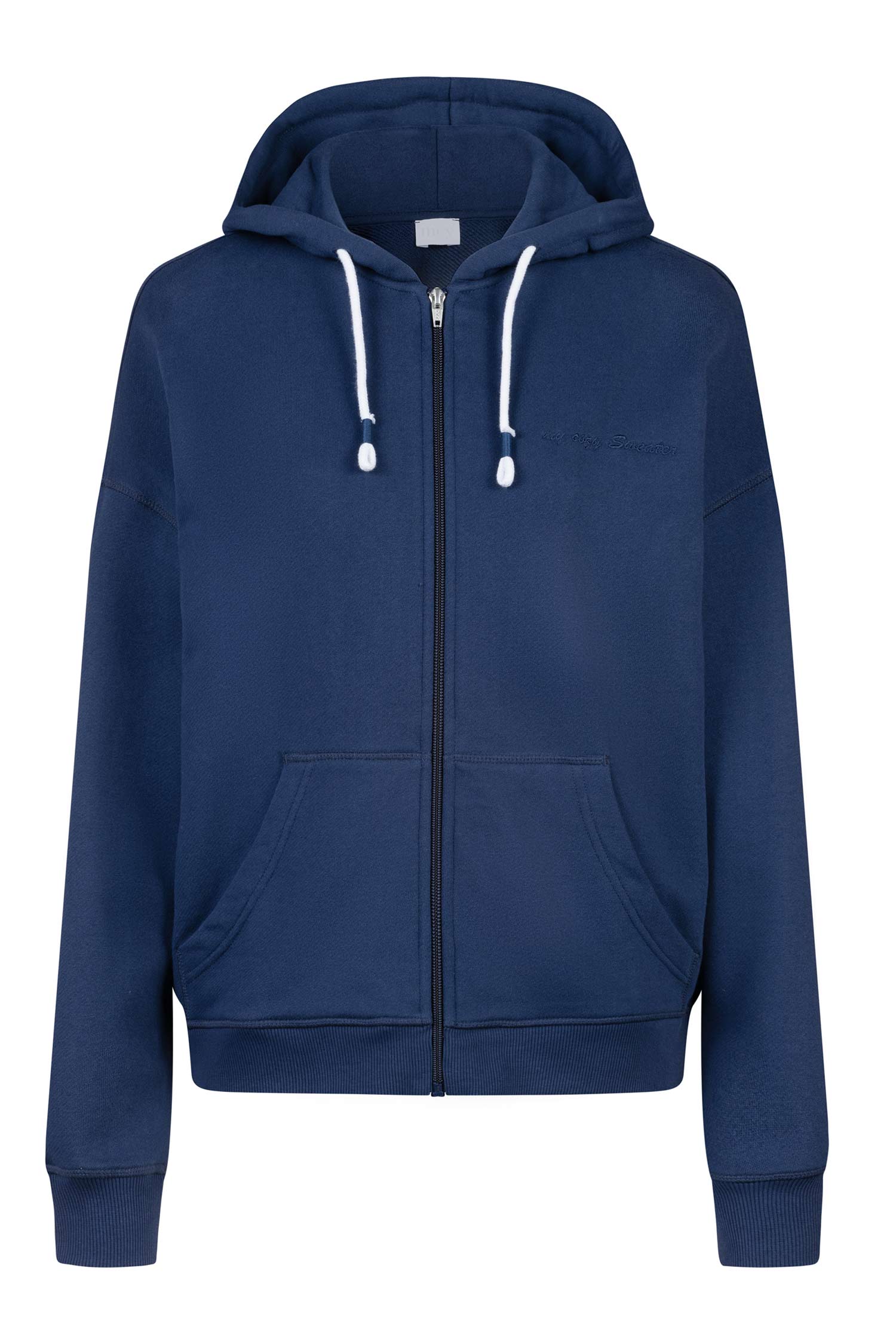 Douce, solide et élégante – Votre nouvelle veste préférée! Ce sweat-Veste moderne en rose doux ou en bleu zodiaque élégant est le parfait mélange de style décontracté et de vibes cosy. Le tissu sweat lourd est merveilleusement doux, tandis que la capuche, les poches kangourou et la broderie «my cozy sweater» ajoutent des détails streetwear détendus.