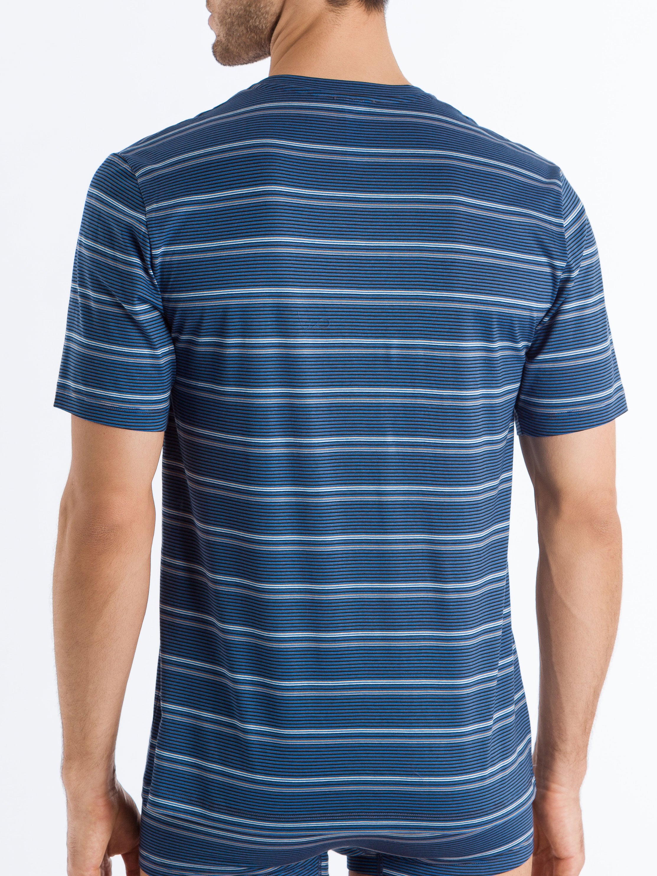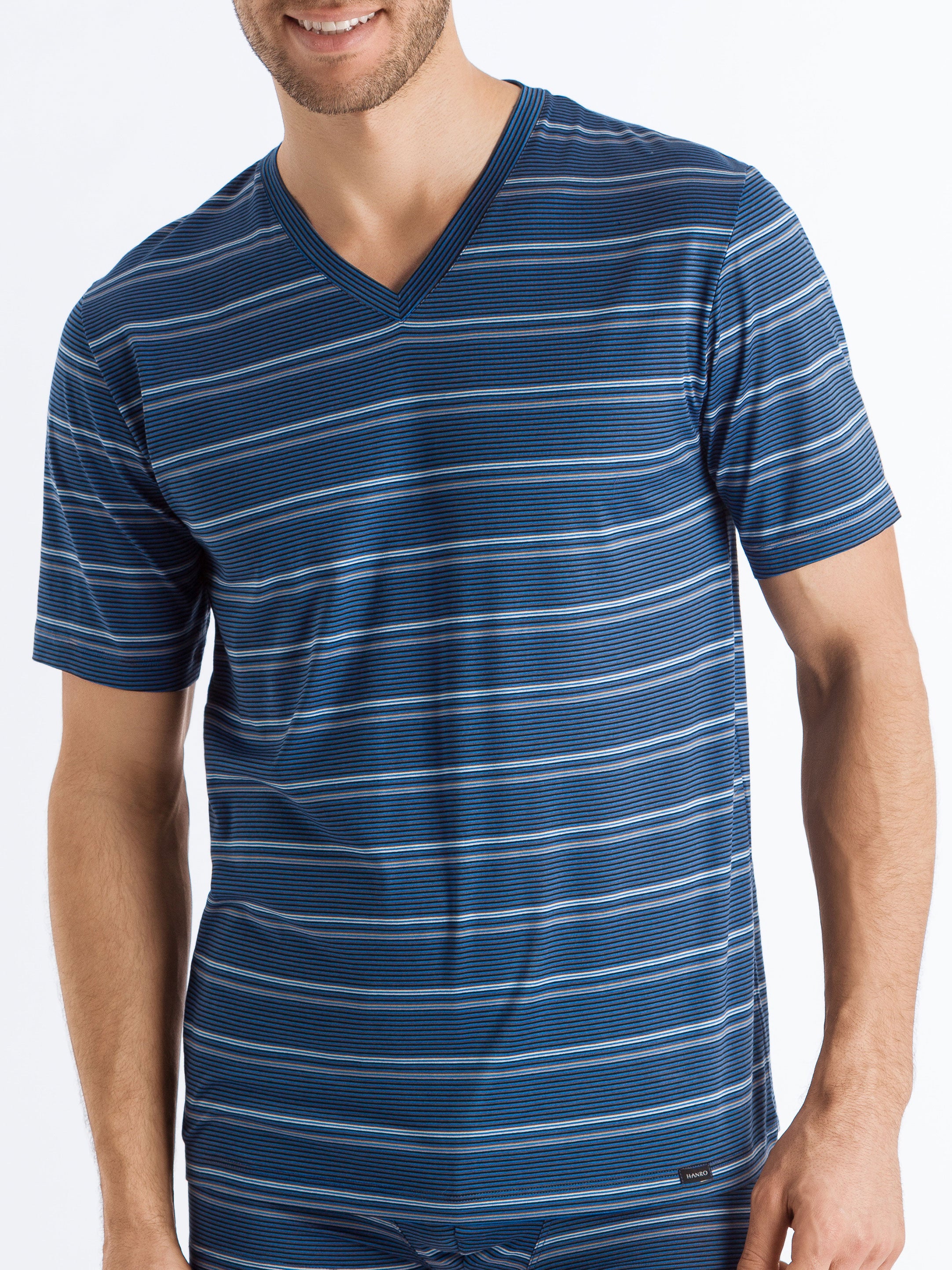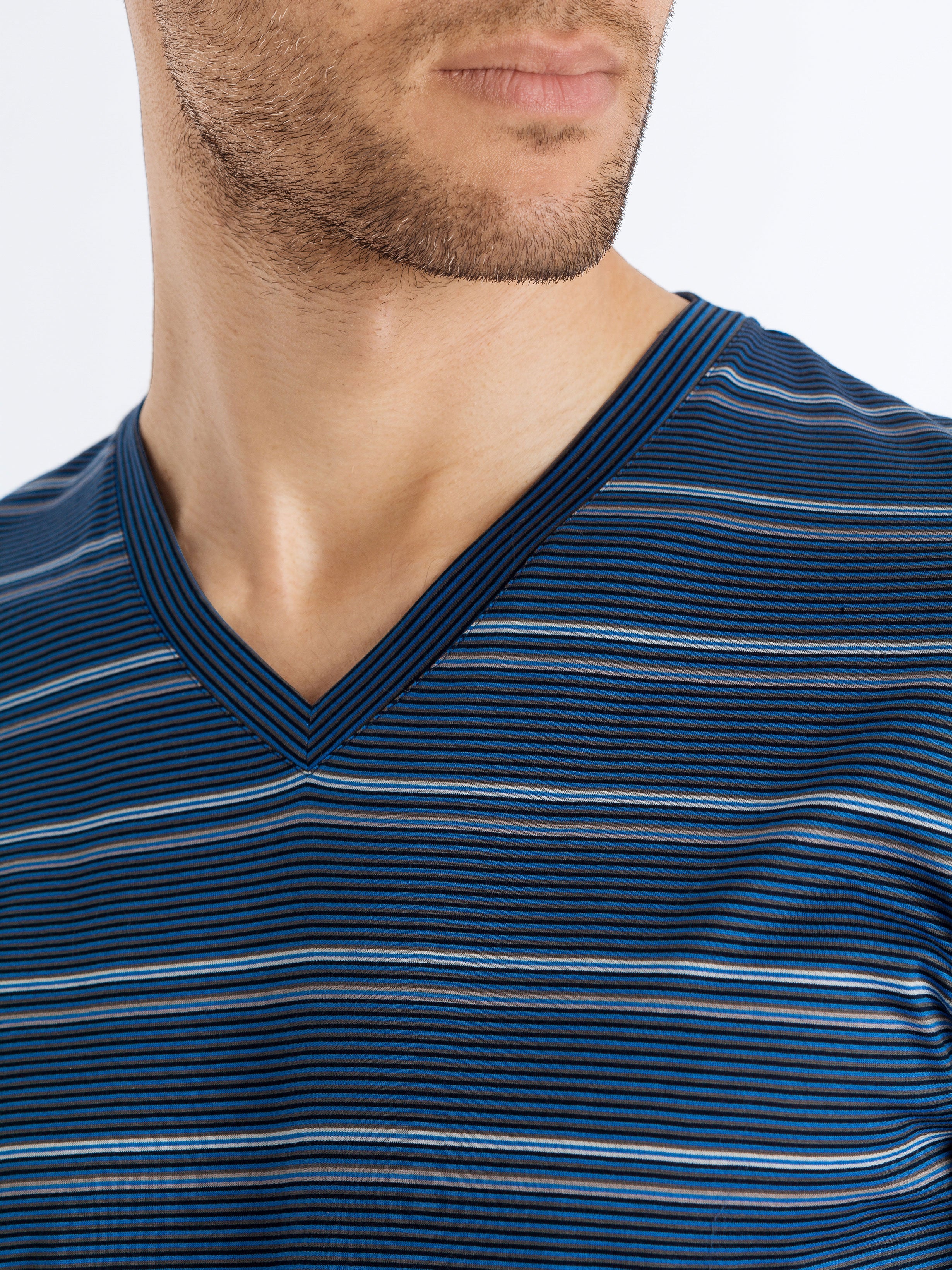 Élégant t-shirt à col en V avec un design à rayures en coton mercerisé de qualité jersey simple.