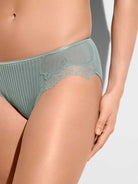 Slip, Côtelé fin, en coton avec dentelle; de la série 207 RICHELIEU de Zimmerli, dans la couleur d'été fraîche "sage" (vert)