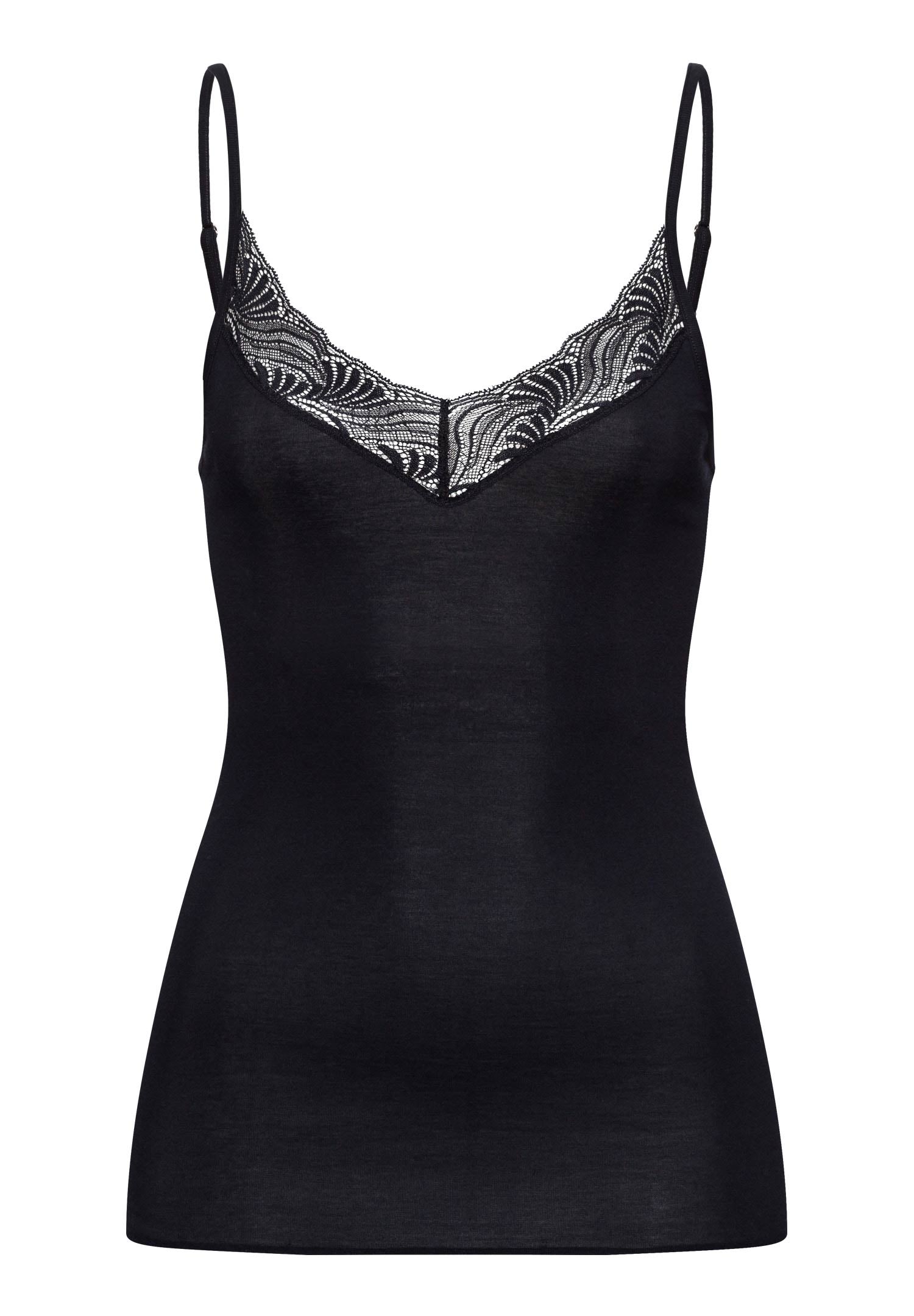 Concediti biancheria intima moderna con un tocco in più. Questo Top a spaghetti entusiasma con uno splendido Comfort d'uso grazie all'uso del cotone mercerizzato più fine. Per un look femminile e affascinante, lo scollo a V è decorato con delicato pizzo.