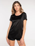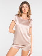 Camicia a maniche corte lussuosa in delicato raso di seta elasticizzato, dalla serie PURE SILK STRETCH di Oscalito