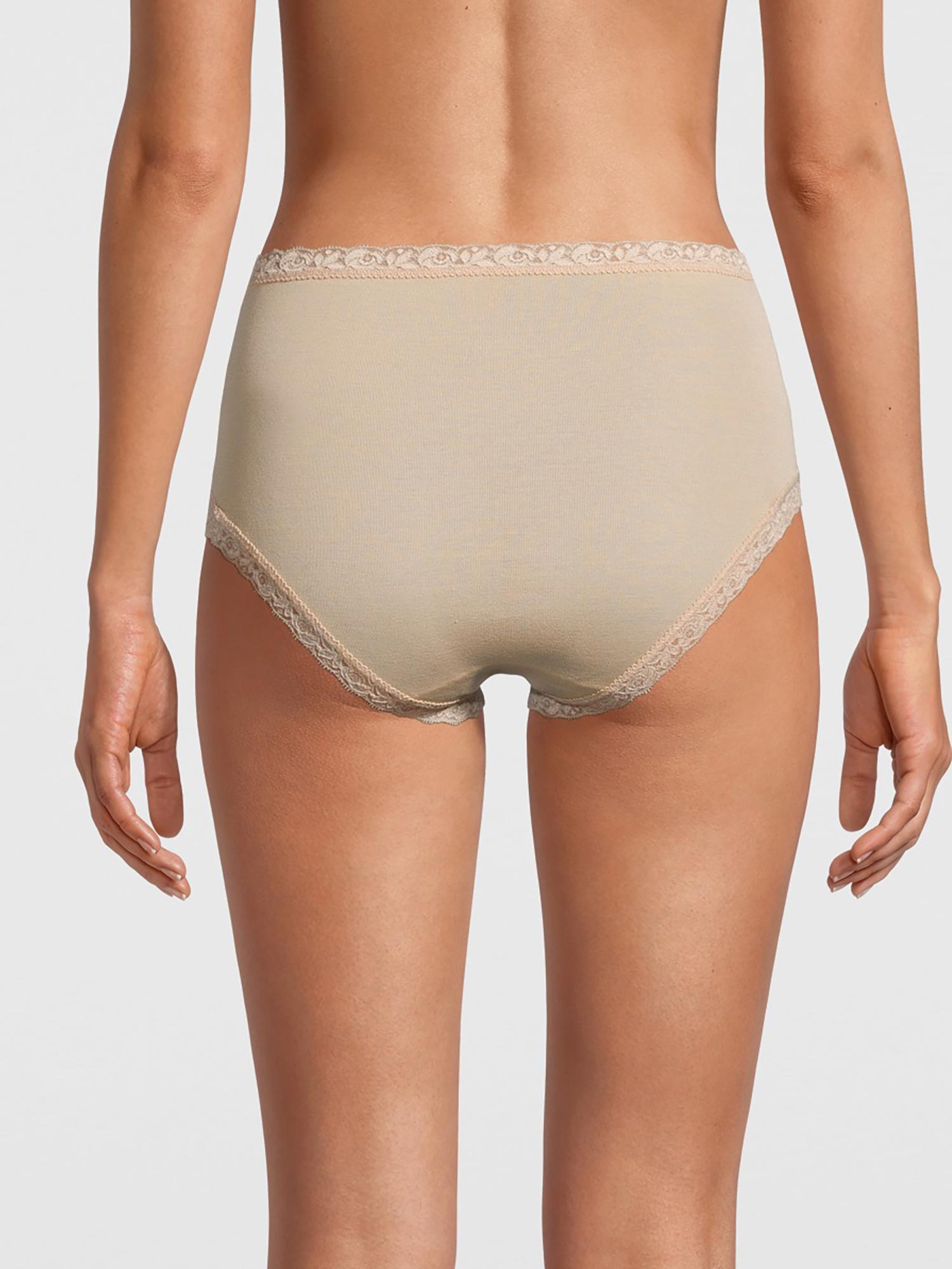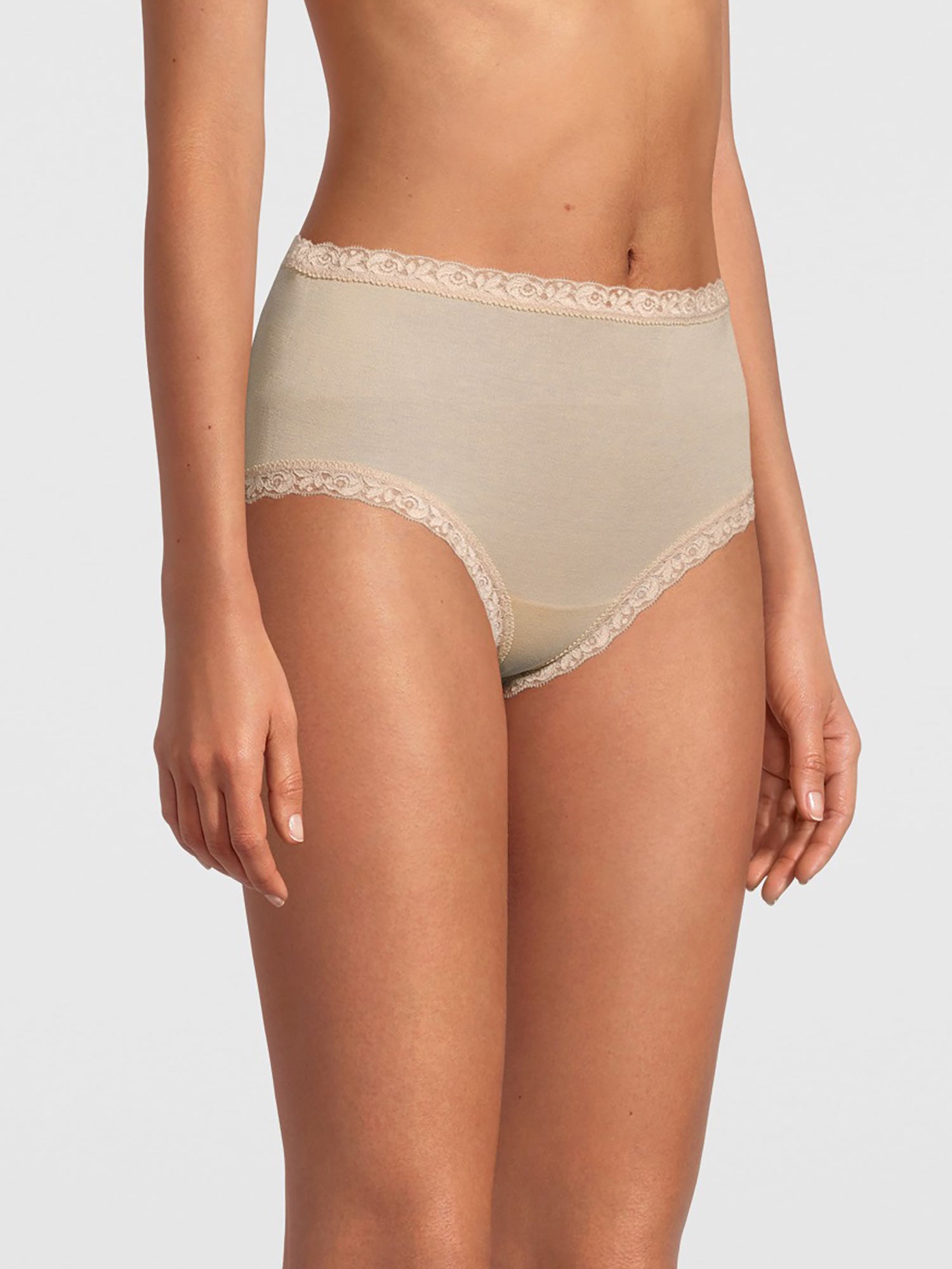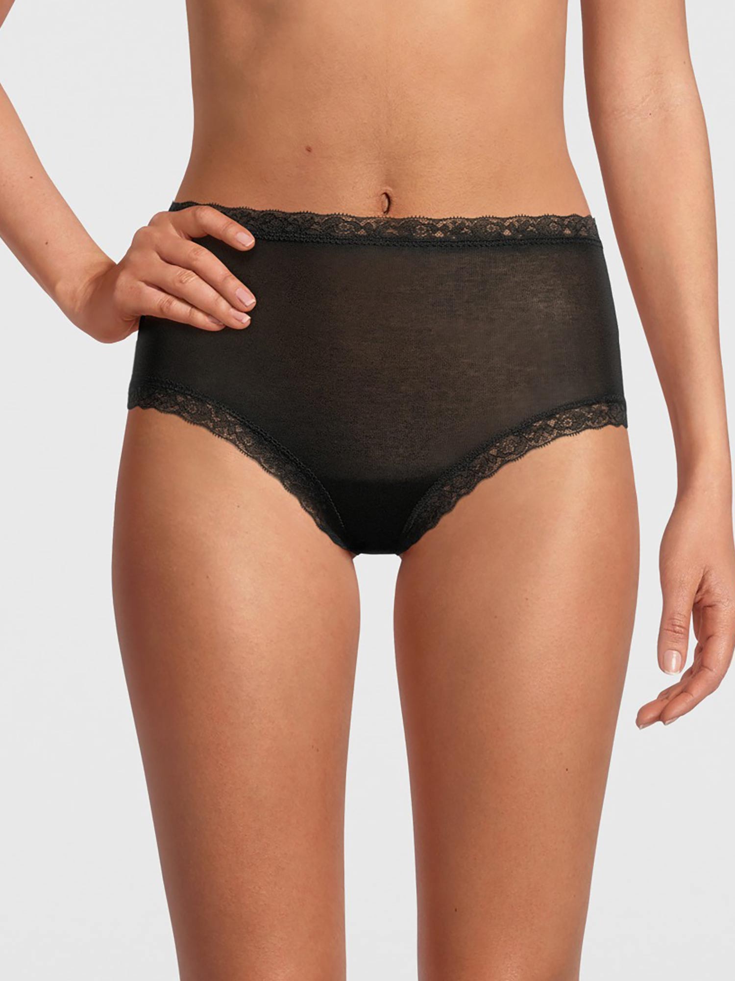 Particolarmente affascinante: il delicato pizzo francese Leavers Dentelle de Calais® – certificato e numerato – si snoda artisticamente lungo la vita e i bordi delle gambe. Senza cuciture laterali, questo Scivolamento garantisce il massimo comfort di utilizzo, mentre il design entusiasma con raffinata eleganza. Un'affermazione femminile per tutte coloro che vogliono sentirsi speciali anche nella loro biancheria intima di benessere.