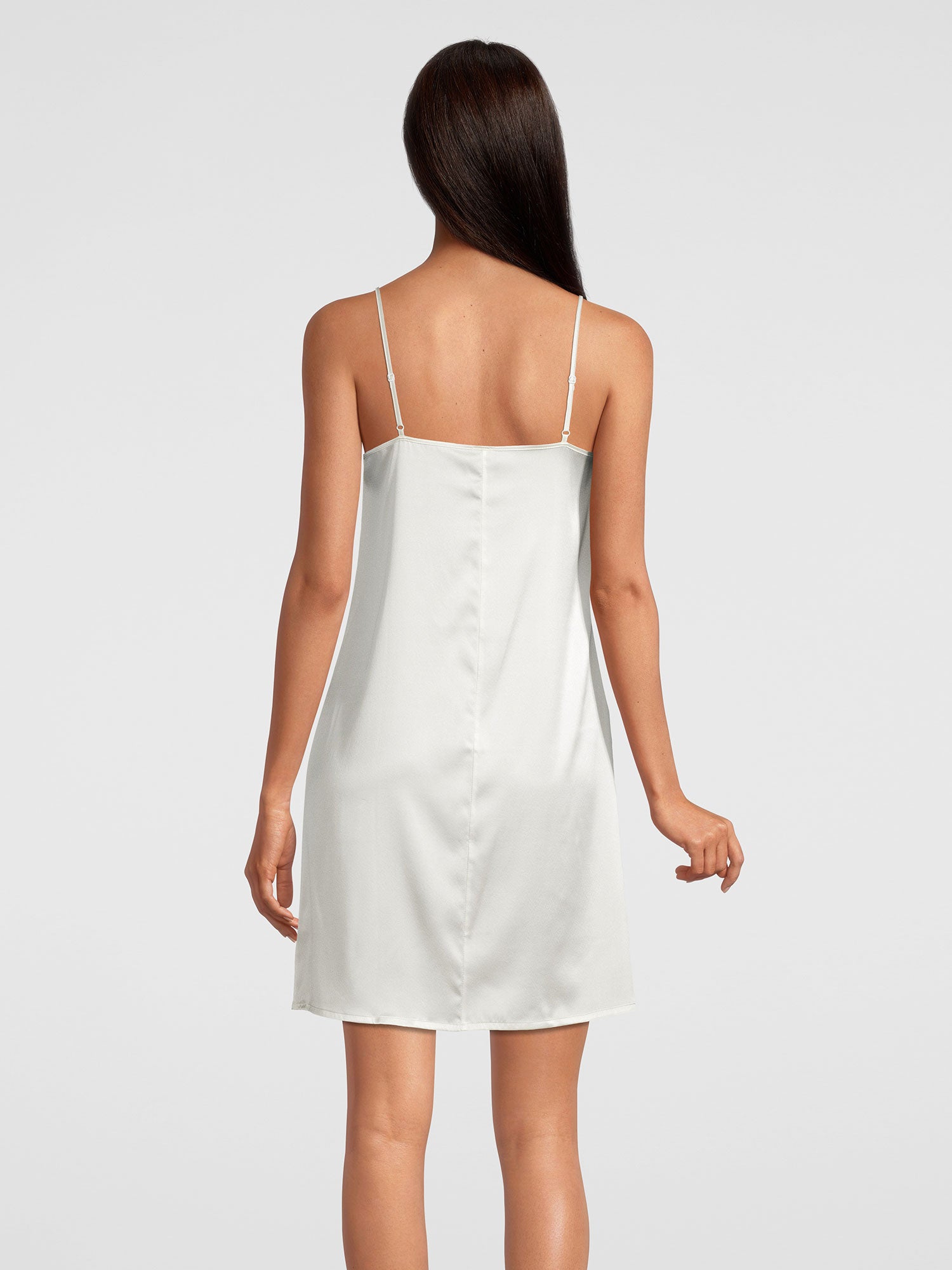 Questa raffinata negligé in finissimo raso di seta elasticizzato unisce leggerezza sensuale al massimo comfort di utilizzo. Le spalline regolabili assicurano una vestibilità personalizzata, mentre la delicata seta scivola dolcemente sulla pelle, per una sensazione di puro lusso ed eleganza perfetta.